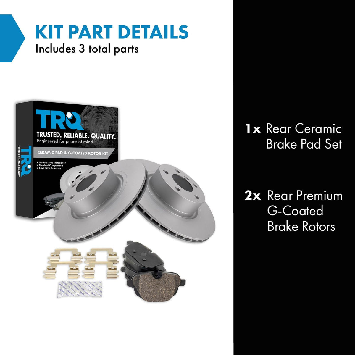 Trq Rear Brake Pad & Rotor Kit Brake Pads Brake Rotor Ceramic Premium G-Coated Compatible With 2011-2016 Bmw X3 2015-2016 X4