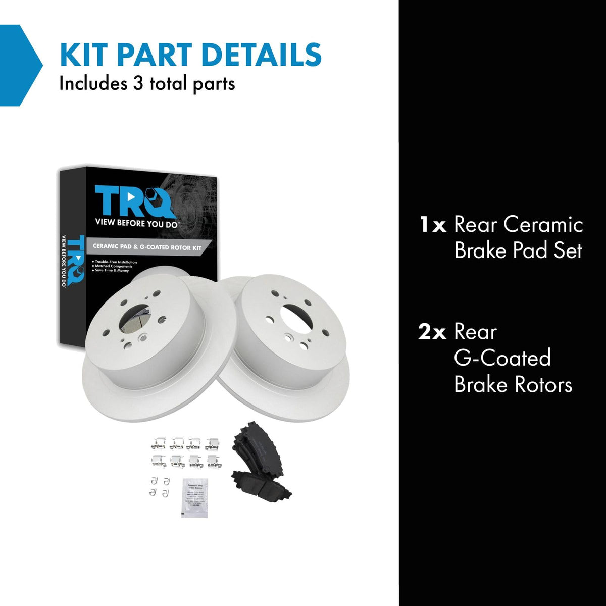 Trq Rear Brake Pad & Rotor Kit Brake Pads Brake Rotor Ceramic Solid Premium G-Coated Compatible With 2014 Toyota Highlander