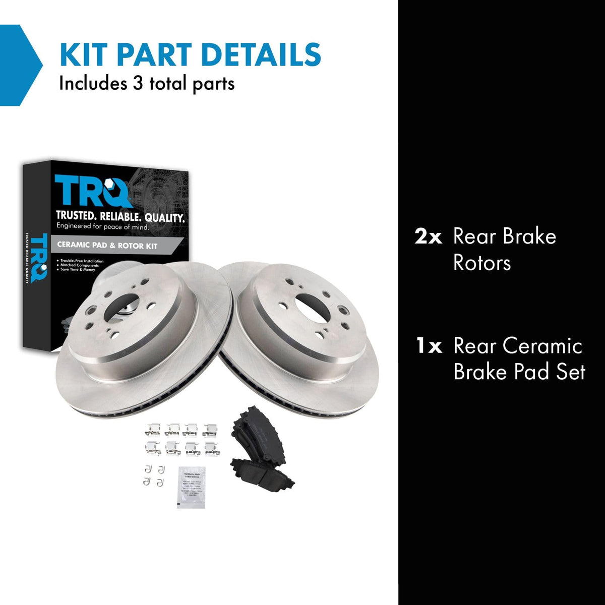 Trq Rear Brake Pad & Rotor Kit Brake Pads Brake Rotor Ceramic Vented Compatible With 2016-2017 Lexus Gs200T