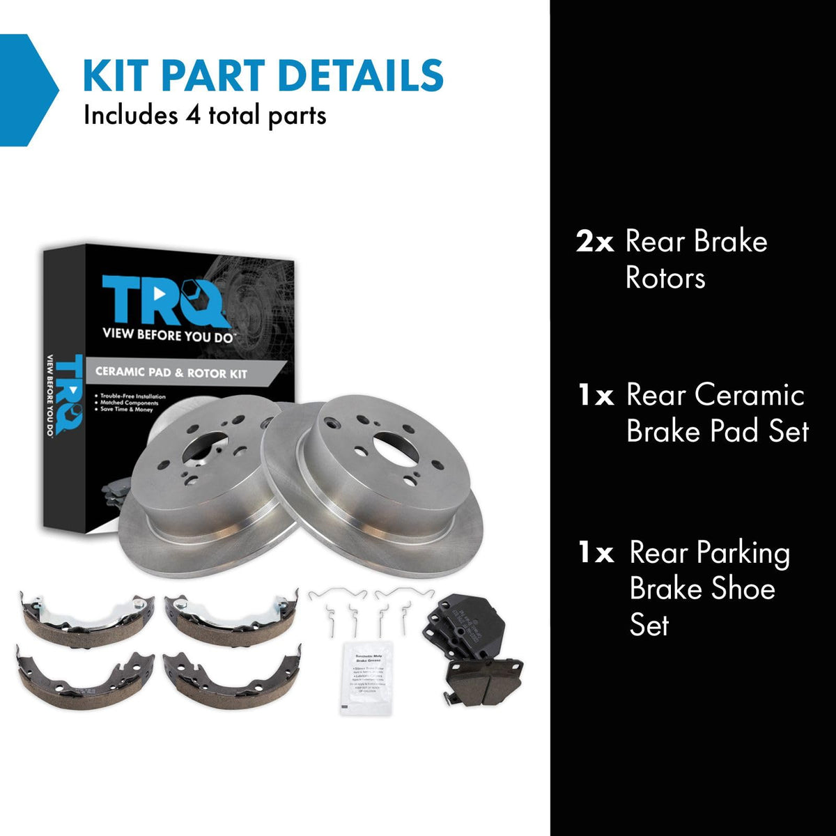 Trq Rear Brake Pad & Rotor Kit Brake Pads Brake Rotor Parking Brake Shoe Set Ceramic Compatible With 2003-2006 Pontiac Vibe 2000