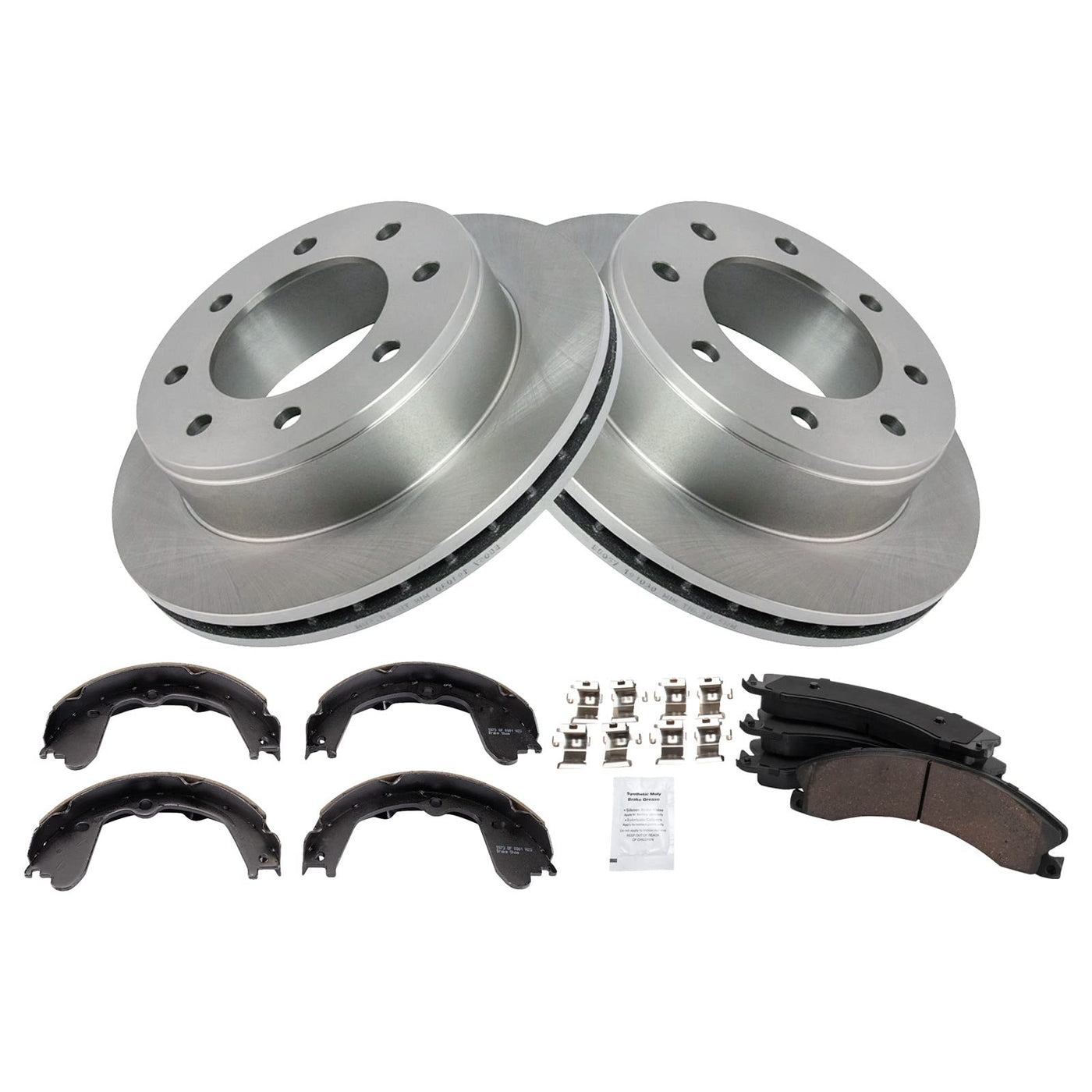 Trq Rear Brake Pad & Rotor Kit Brake Pads Brake Rotor Parking Brake Shoe Set Ceramic Compatible With 2009-2018 Chevrolet Express
