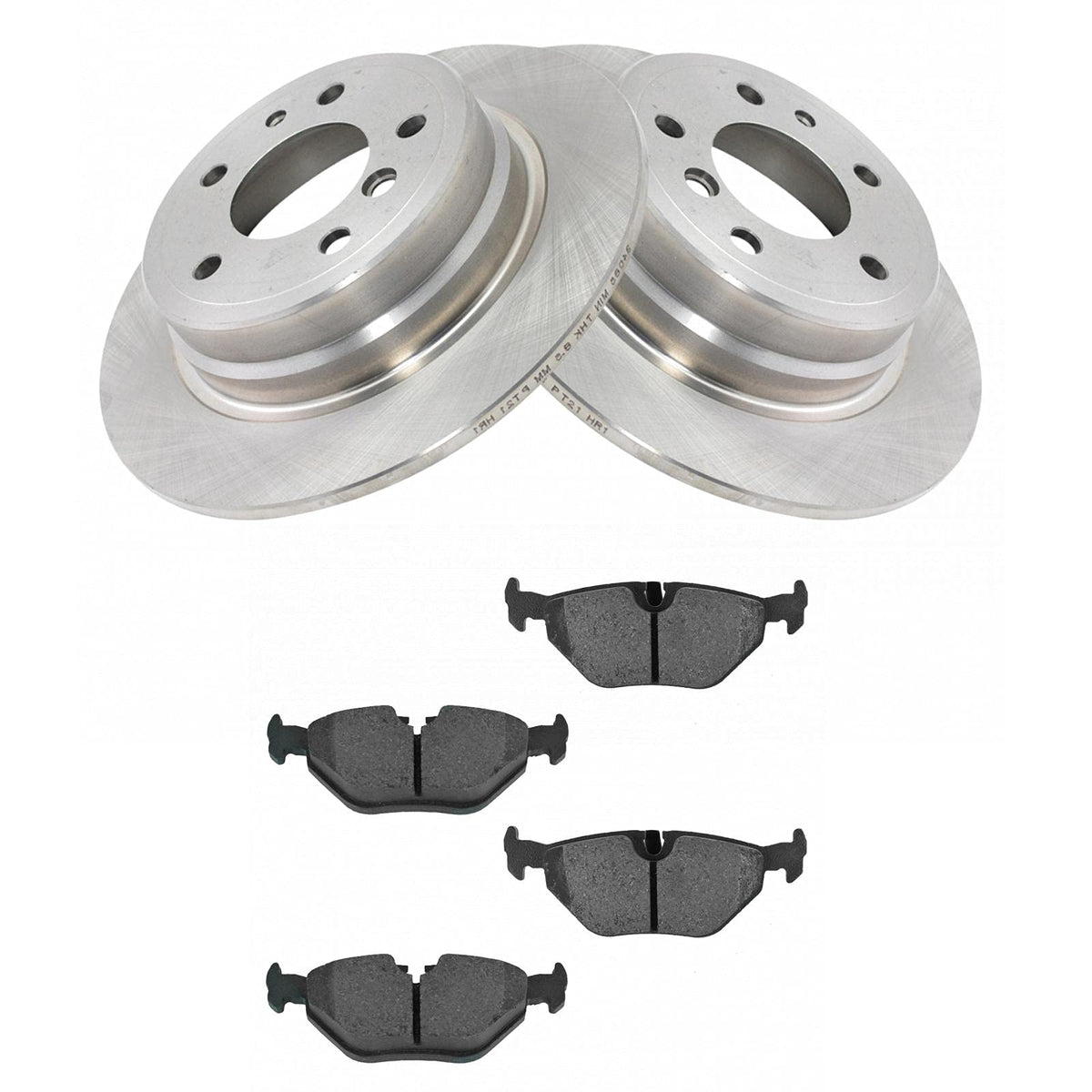 Trq Rear Brake Pad & Rotor Kit Brake Pads Brake Rotor Semi-Metallic Compatible With 1989-1995 Bmw 525I 1993 525It 1994-1995 530I