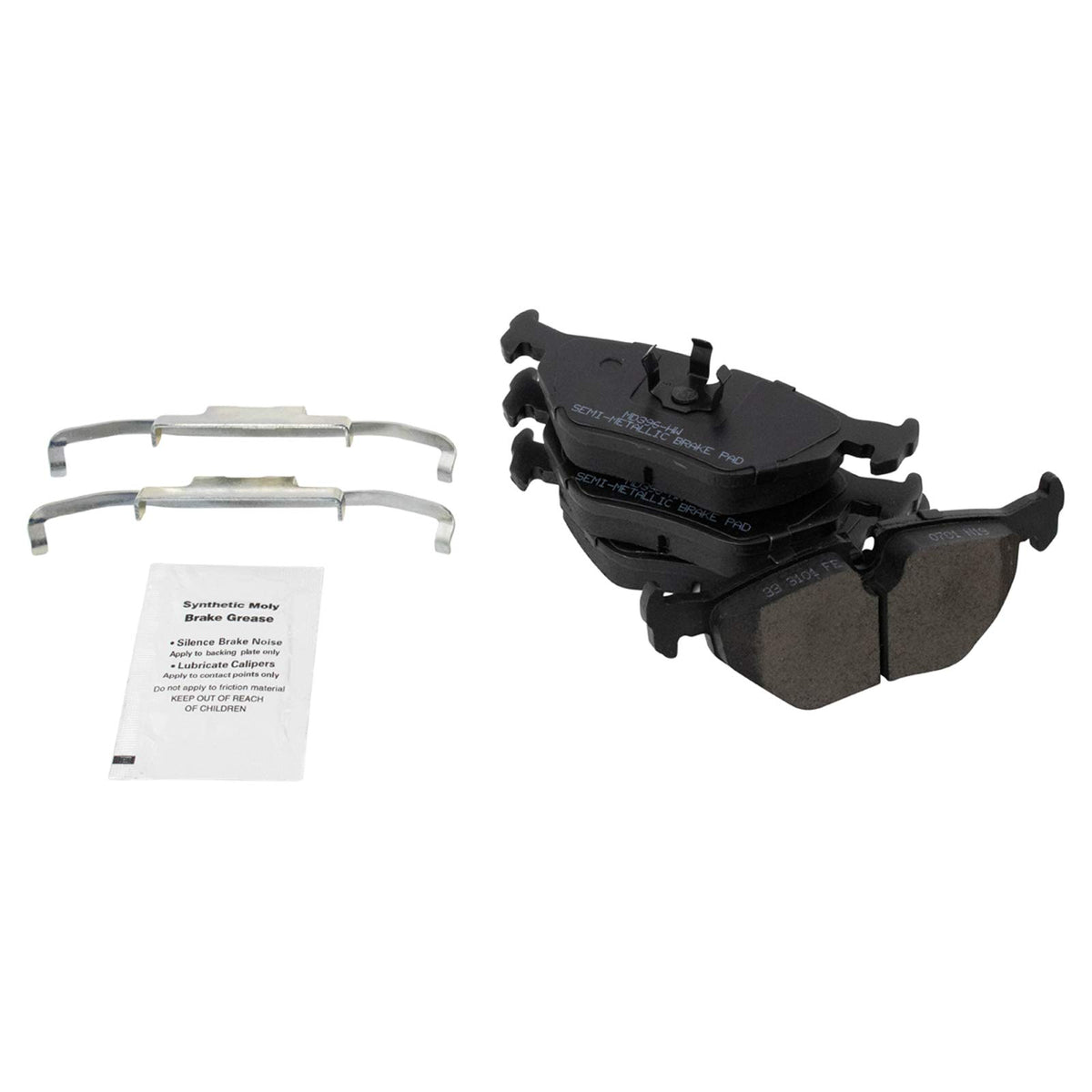 Semi-Metallic Brake Pad & Rotor KitKit Includes(1) Rear Semi-Metallic Brake Pad Set(2) Rear Brake RotorsFitmentCompatible with: 1996-98 BMW 328i Sedan Rear with Solid Rear RotorsCompatible with: 1998-99 BMW 323i Convertible RearCompatible with: 1994-95 BMW 325i RearCompatible with: 1992-98 BMW 318i RearCompatible with: 1992-93 BMW 325i L6 2.5L DOHC RearCompatible with: 1996-99 BMW 328iS Rear with Solid Rear RotorsCompatible with: 1992-97 BMW 318iS RearProduct AttributesBrake Pad Bonding Type: Premium PosiBrake Pad Friction Material: Semi-MetallicProduct Features Positive Molded - Less dust resulting in clean wheels G3000 Casting Alloy - Reduced noise and improved wear resistance Application Specific Design - Extended service life, no modificationsItem DetailsTRQ brake kits are designed to restore your brake system to like-new performance. TRQ brake pads are positive molded, thermal scorched, chamfered, and utilize a multi-layer shim for enhanced performance and service life. TRQ rotors have a non-directional finish that reduces the break-in period for new rotors as well as reducing vibrations throughout the rotors lifecycle. All products are fit and road-tested in our Massachusetts R&D facility to ensure we deliver on our promise of Trusted Reliable Quality.Reference NumbersAimco: 34007, 34172Bendix: PRT1817, PRT5302BMW: 34211157334, 34211157814, 34211158221, 34211160198, 34211160199, 34211160533, 34211162536, 34212226092DIY Solutions: BFS01357DuraGo: BR34007Raybestos Brakes: 96387, 96387FZN, 96387P, 96387R, 96958, 96958FZN, 96958P, 96958R, PGD396MWagner: BD125278