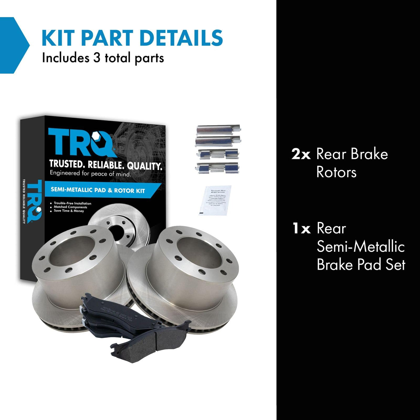 Trq Rear Brake Pad & Rotor Kit Brake Pads Brake Rotor Semi-Metallic Compatible With 2001-2002 Dodge Ram 2500 Ram 3500