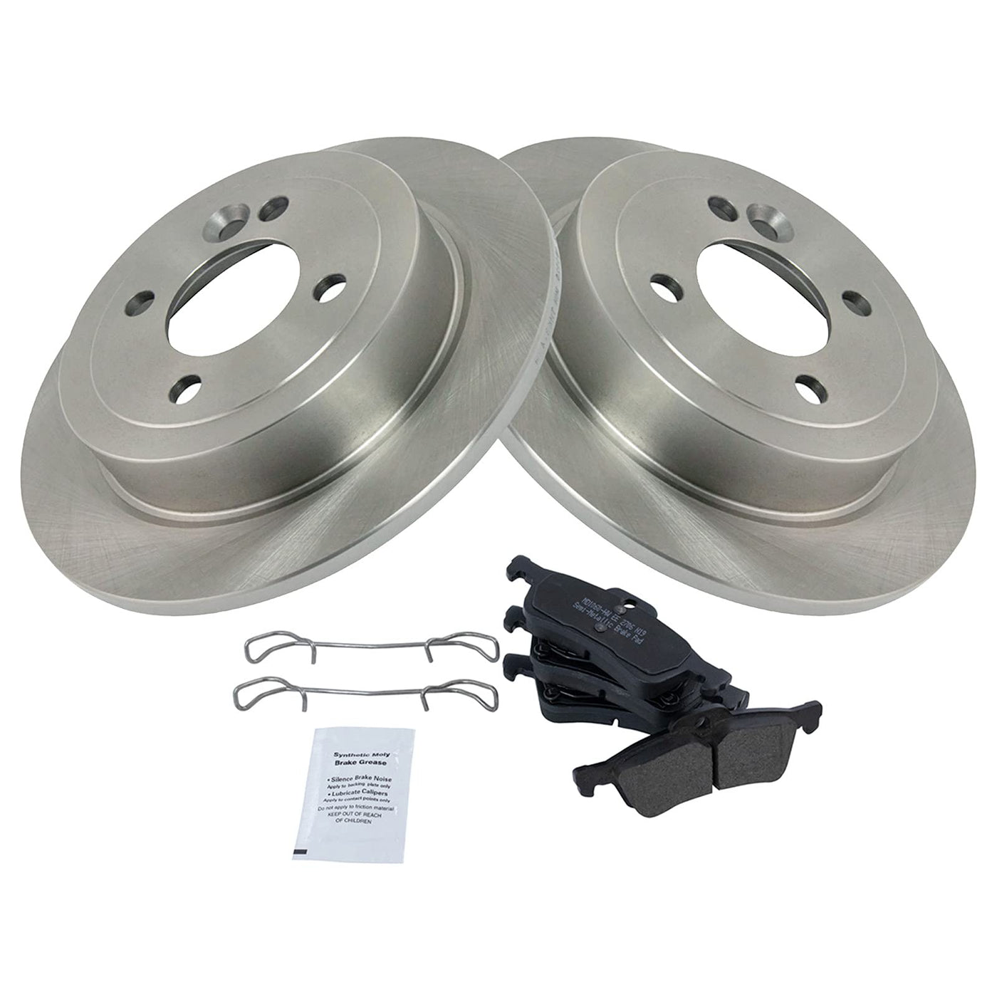 Trq Rear Brake Pad & Rotor Kit Brake Pads Brake Rotor Semi-Metallic Compatible With 2002-2006 Mini Cooper