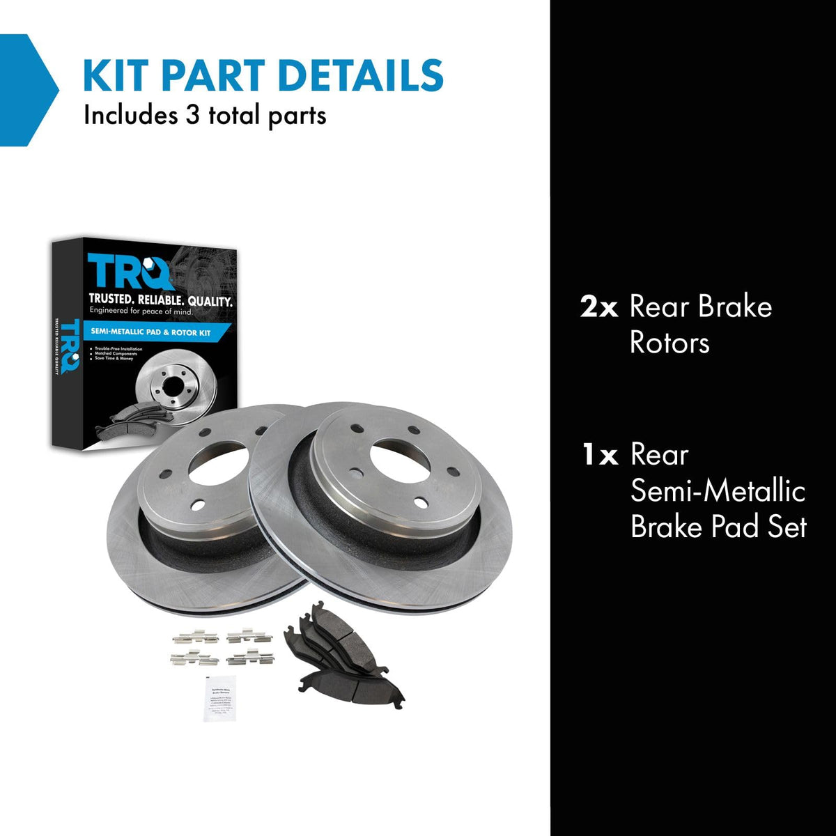 Trq Rear Brake Pad & Rotor Kit Brake Pads Brake Rotor Semi-Metallic Compatible With 2007-2009 Chrysler Aspen 2005-2009 Dodge Dur