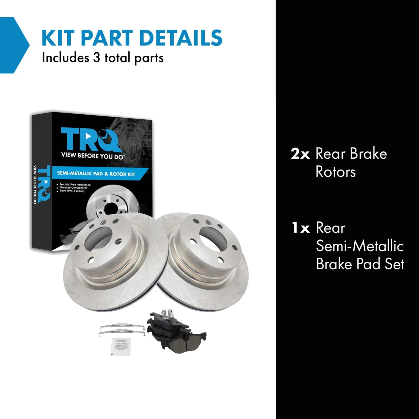 Trq Rear Brake Pad & Rotor Kit Brake Pads Brake Rotor Semi-Metallic Compatible With 2009-2013 Bmw 128I