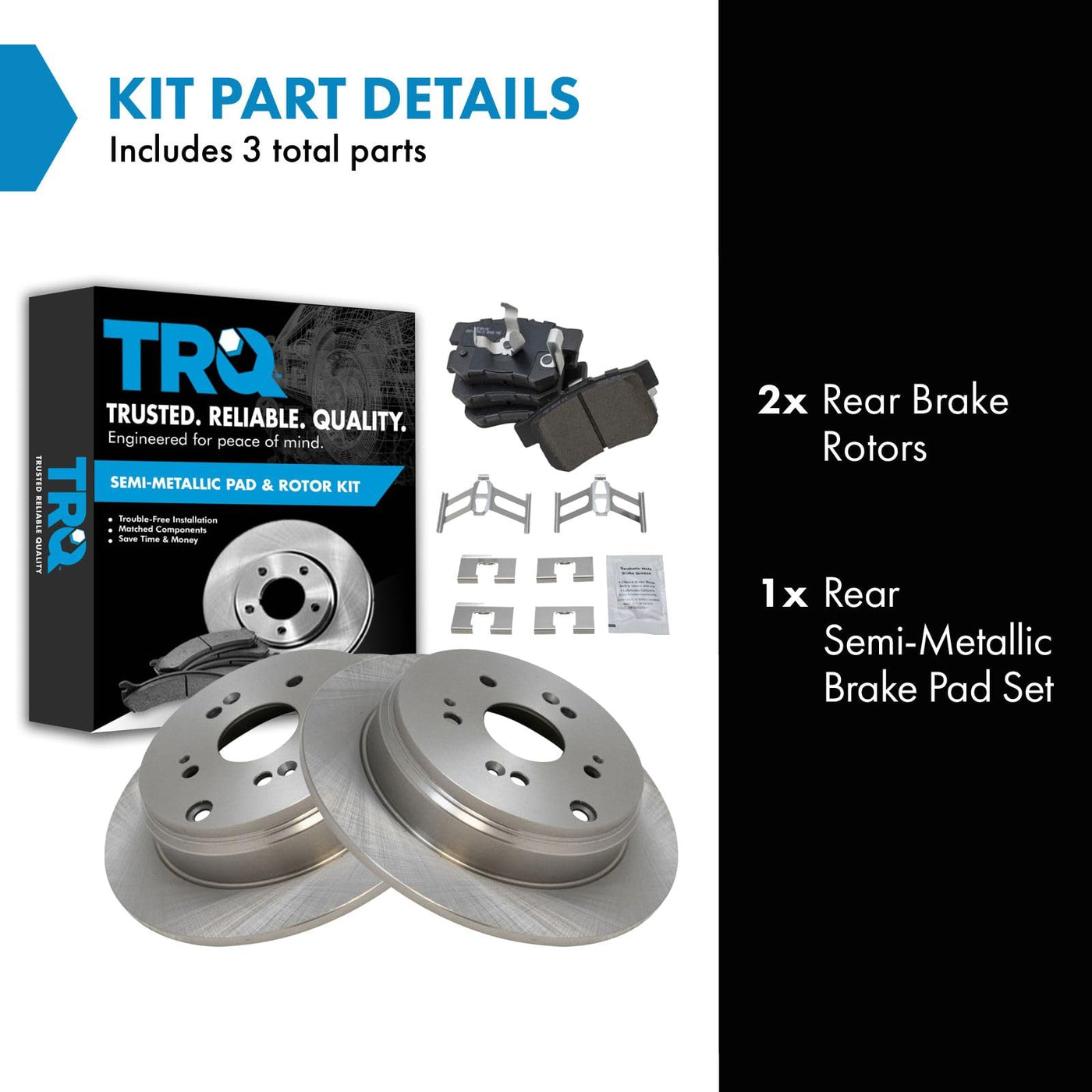 Trq Rear Brake Pad & Rotor Kit Brake Pads Brake Rotor Semi-Metallic Compatible With 2010-2018 Acura Rdx 2005-2016 Honda Cr-V