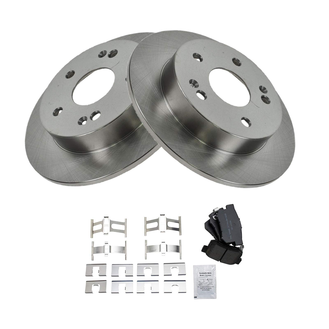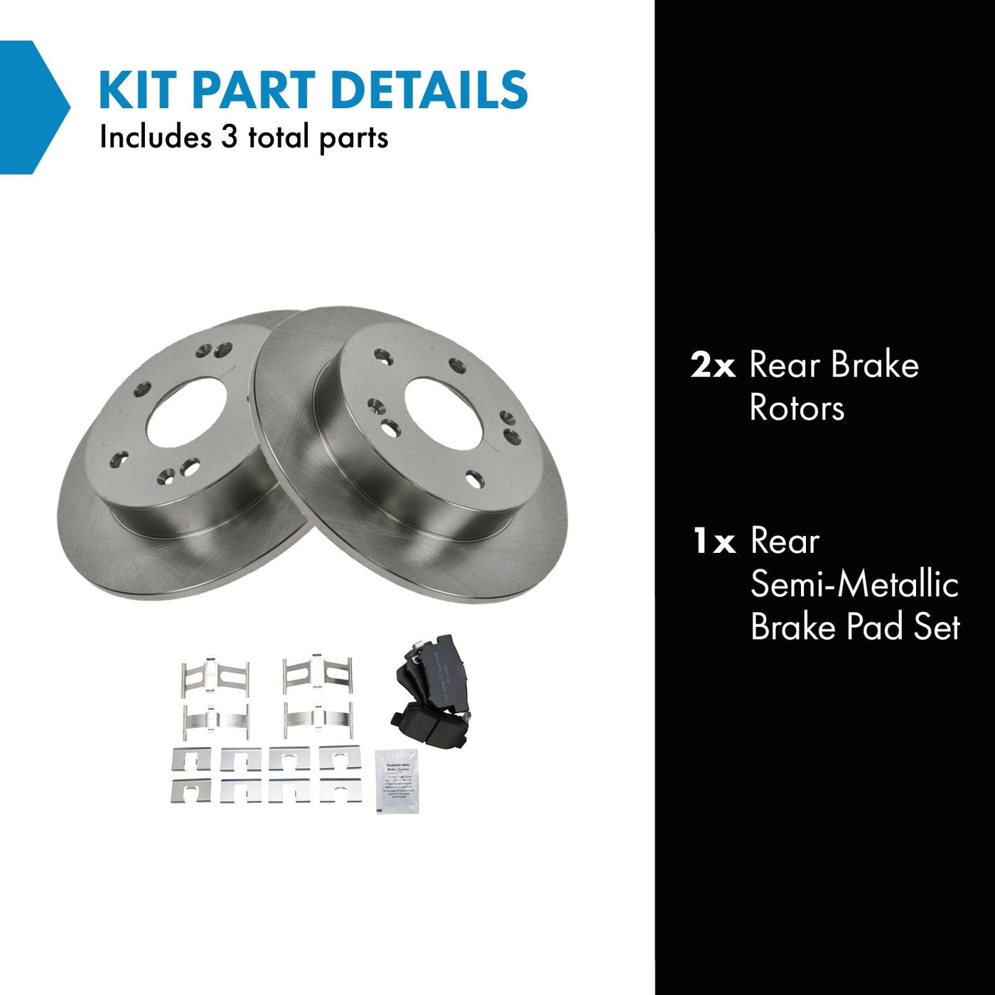 Semi-Metallic Brake Pad & Rotor KitKit Includes(1) Rear Semi-Metallic Brake Pad Set(2) Rear Brake RotorsFitmentCompatible with: 1997-01 Honda Prelude RearProduct AttributesRear Brake Rotor Diameter: 10.24 in. (260mm)Wheel Lug Count: 5 LugBrake Pad Bonding Type: Premium PosiBrake Pad Friction Material: Semi-MetallicRear Brake Rotor Venting Type: SolidProduct Features Positive Molded - Less dust resulting in clean wheels G3000 Casting Alloy - Reduced noise and improved wear resistance Application Specific Design - Extended service life, no modificationsItem DetailsTRQ brake kits are designed to restore your brake system to like-new performance. TRQ brake pads are positive molded, thermal scorched, chamfered, and utilize a multi-layer shim for enhanced performance and service life. TRQ rotors have a non-directional finish that reduces the break-in period for new rotors as well as reducing vibrations throughout the rotors lifecycle. All products are fit and road-tested in our Massachusetts R&D facility to ensure we deliver on our promise of Trusted Reliable Quality.Reference NumbersAcura: 43022S5AJ00, 43022S84A50, 43022SL5000, 43022SV4A20, 43022SV4G22, 43022SY8A00, 43022SY8A01, 43022TR0A00, 43022TR0A01Aimco: 31227Bendix: PRT5159Dorman - First Stop: 96706DuraGo: BR31227Hollander: 533-58490Honda: 43022S2A000, 43022S5AJ00, 43022S6D010, 43022S6DE50, 43022S84A50, 43022SL5000, 43022SM4G00, 43022SV4A00, 43022SV4A20, 43022SV4A21, 43022SV4A22, 43022SV4A23, 43022SV4G20, 43022SV4G21, 43022SV4G22, 43022SY8A00, 43022SY8A01, 43022TR0A00, 43022TR0A01Raybestos Brakes: 96706, 96706FZN, 96706P, 96706R, EHT537HSuzuki: 43022SM4G00, 55800-57L52, 5580057L00, 5580057L50, 5580080J00, 5580080J01, 5580080J02Wagner: BD125605, BD126413
