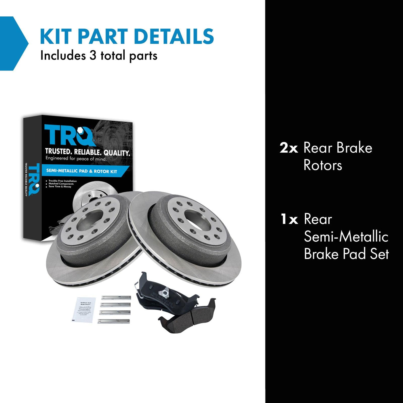 Trq Rear Brake Pad & Rotor Kit Semi-Metallic Compatible With 2003-2011 Lincoln Town Car