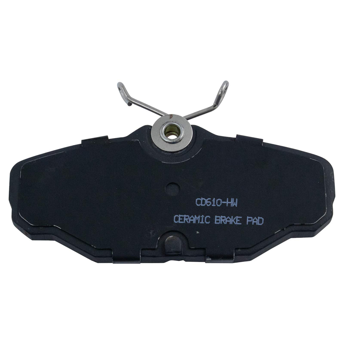Ceramic Brake PadsFitmentCompatible with: 1993-07 Ford Taurus RearCompatible with: 1993-05 Mercury Sable RearCompatible with: 1993-02 Lincoln Continental RearProduct AttributesInner Pad Friction Material Thickness: 0.63 inOuter Pad Friction Material Thickness: 0.63 inInner Pad Overall Thickness: 0.67 inOuter Pad Overall Thickness: 0.67 inOuter Pad Width: 1.65 inInner Pad Width: 1.65 inOuter Pad Friction Material Thickness: 16 mmInner Pad Friction Material Thickness: 16 mmOuter Pad Overall Thickness: 17 mmInner Pad Overall Thickness: 17 mmInner Pad Height: 3.70 inOuter Pad Height: 3.70 inPad Quantity: 4Outer Pad Width: 42 mmInner Pad Width: 42 mmOuter Pad Height: 94 mmInner Pad Height: 94 mmBacking Plate Color: BlackPad Shim Color: BlackFriction Material Attachment: BondedFriction Material Composition: CeramicBetter Brakes Law SAE Environmental Compliance Level: NPad Wear Sensor Included: NoWear Indicator Attached: NoFriction Surface Scorched: NoPrepared For Pad Wear Sensor: NoBolts Included: NoECE-R90 Certified: NoMounting Hardware Included: NoPad Shim Material: R-S-RGrade Type: RegularBacking Material: SteelSlotted: YesPad Shims Included: YesChamfered Edges: YesBrake Lubricant Included: YesAbutment Clips Included: YesBrake Pad Friction Material: CeramicIncludes: Contact Point GreaseIncludes: HardwareBrake Pad Bonding Type: Premium PosiProduct Features Positive Molded: Less dust resulting in clean wheels Thermal Scorched: Improved stopping performance Application Specific Design: Extended service life, no modifications Hardware and grease included for a complete repair Environmentally Compliant: Meets all Better Brake Law standardsItem DetailsTRQ brake pads are manufactured using premium raw materials and design standards to restore original performance. TRQ brake pads are positive molded and utilize a multi-layer shim for enhanced performance and service life. TRQs combination of materials and design ensures a low dust and low noise braking experience. TRQ recommends replacing your brake rotors when you replace your brake pads to ensure even wear of components and improved braking comfort. All products are fit and road-tested in our Massachusetts R&D facility to ensure we deliver on our promise of Trusted Reliable Quality.Reference NumbersFord: F8DZ2200AALincoln: F6DZ2200AAMercury: F8DZ2200AARaybestos Brakes: EHT610H, MGD610CH