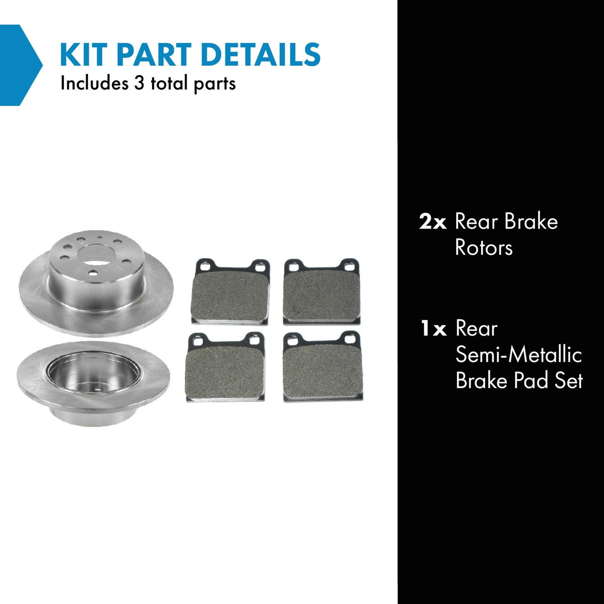 Semi-Metallic Brake Pad & Rotor KitKit Includes(1) Rear Semi-Metallic Brake Pad Set(2) Rear Brake RotorsFitmentCompatible with: 1986-89 Mercedes Benz 560SL RearCompatible with: 1981-85 Mercedes Benz 380SL RearCompatible with: 1975-84 Mercedes Benz 300D RearCompatible with: 1975-80 Mercedes Benz 450SL RearCompatible with: 1986-91 Mercedes Benz 560SEL Rear without Acceleration Slip Regulation ASRCompatible with: 1978-85 Mercedes Benz 300SD RearCompatible with: 1975-83 Mercedes Benz 240D RearCompatible with: 1986-91 Mercedes Benz 560SEC Rear without Acceleration Slip Regulation ASRCompatible with: 1986-87 Mercedes Benz 300SDL RearCompatible with: 1988-90 Mercedes Benz 300SE Rear without Acceleration Slip Regulation ASRCompatible with: 1985 Mercedes Benz 300D To 4/30/85 Production Date RearCompatible with: 1990-91 Mercedes Benz 420SEL Rear without Acceleration Slip Regulation ASRCompatible with: 1988-91 Mercedes Benz 300SEL Rear without Acceleration Slip Regulation ASRCompatible with: 1973-74 Mercedes Benz 450SL Rear with 4 Wheel Disc BrakesCompatible with: 1980-84 Mercedes Benz 300TD RearCompatible with: 1991 Mercedes Benz 300SE To 3/31/91 Production Date Rear without Acceleration Slip Regulation ASRCompatible with: 1978-84 Mercedes Benz 300CD RearCompatible with: 1990-91 Mercedes Benz 350SDL RearCompatible with: 1985 Mercedes Benz 300TD To 4/30/85 Production Date RearCompatible with: 1975-80 Mercedes Benz 450SLC RearCompatible with: 1991 Mercedes Benz 350SD RearCompatible with: 1984-85 Mercedes Benz 500SEL RearCompatible with: 1984-85 Mercedes Benz 380SE RearCompatible with: 1985 Mercedes Benz 300CD To 4/30/85 Production Date RearCompatible with: 1968-73 Mercedes Benz 220 Rear with 4 Wheel Disc BrakesCompatible with: 1975-80 Mercedes Benz 450SEL RearCompatible with: 1973-74 Mercedes Benz 280C Rear with 4 Wheel Disc BrakesCompatible with: 1978-81 Mercedes Benz 280CE RearCompatible with: 1984-85 Mercedes Benz 500SEC RearCompatible with: 1982-83 Mercedes Benz 380SEC RearCompatible with: 1981-83 Mercedes Benz 380SEL RearCompatible with: 1975-76 Mercedes Benz 280C RearCompatible with: 1973-74 Mercedes Benz 450SLC Rear with 4 Wheel Disc BrakesCompatible with: 1968-72 Mercedes Benz 250 Rear with 4 Wheel Disc BrakesCompatible with: 1981 Mercedes Benz 380SLC RearCompatible with: 1971-72 Mercedes Benz 250C Rear with 4 Wheel Disc BrakesCompatible with: 1974 Mercedes Benz 240D Rear with 4 Wheel Disc BrakesCompatible with: 1973-74 Mercedes Benz 450SE Rear with 4 Wheel Disc BrakesCompatible with: 1975-76 Mercedes Benz 450SE RearCompatible with: 1973-74 Mercedes Benz 450SEL Rear with 4 Wheel Disc BrakesCompatible with: 1977-81 Mercedes Benz 280E RearCompatible with: 1974 Mercedes Benz 230 Rear with 4 Wheel Disc BrakesCompatible with: 1977-80 Mercedes Benz 280SE RearCompatible with: 1975-76 Mercedes Benz 280 RearCompatible with: 1975-76 Mercedes Benz 280S RearCompatible with: 1973-74 Mercedes Benz 280 Rear with 4 Wheel Disc BrakesCompatible with: 1965-73 Mercedes Benz 300SEL Rear with 4 Wheel Disc BrakesCompatible with: 1972-73 Mercedes Benz 280SE Rear with 4 Wheel Disc BrakesCompatible with: 1969-73 Mercedes Benz 220D Rear with 4 Wheel Disc BrakesCompatible with: 1968-72 Mercedes Benz 280SEL Rear with 4 Wheel Disc BrakesCompatible with: 1971 Mercedes Benz 280SE Base Model Rear with 4 Wheel Disc BrakesCompatible with: 1968-71 Mercedes Benz 280SL Rear with 4 Wheel Disc BrakesCompatible with: 1968-71 Mercedes Benz 280S Rear with 4 Wheel Disc BrakesCompatible with: 1968-70 Mercedes Benz 280SE Rear with 4 Wheel Disc BrakesCompatible with: 1967-69 Mercedes Benz 230 Rear with 4 Wheel Disc BrakesCompatible with: 1967 Mercedes Benz 250SL Rear with 4 Wheel Disc BrakesCompatible with: 1966-67 Mercedes Benz 250S Rear with 4 Wheel Disc BrakesCompatible with: 1967 Mercedes Benz 250SE Rear with 4 Wheel Disc BrakesProduct AttributesRear Brake Rotor Diameter: 10.98 in. (279mm)Wheel Lug Count: 5 LugBrake Pad Bonding Type: Premium PosiBrake Pad Friction Material: Semi-MetallicRear Brake Rotor Venting Type: SolidProduct Features Positive Molded - Less dust resulting in clean wheels G3000 Casting Alloy - Reduced noise and improved wear resistance Application Specific Design - Extended service life, no modificationsItem DetailsTRQ brake kits are designed to restore your brake system to like-new performance. TRQ brake pads are positive molded, thermal scorched, chamfered, and utilize a multi-layer shim for enhanced performance and service life. TRQ rotors have a non-directional finish that reduces the break-in period for new rotors as well as reducing vibrations throughout the rotors lifecycle. All products are fit and road-tested in our Massachusetts R&D facility to ensure we deliver on our promise of Trusted Reliable Quality.Reference NumbersAimco: 3203Bendix: PRT1448DuraGo: BR3203Mercedes-Benz: 14200620, 4205820Raybestos Brakes: 9941, 9941FZN, 9941P, 9941RVolvo