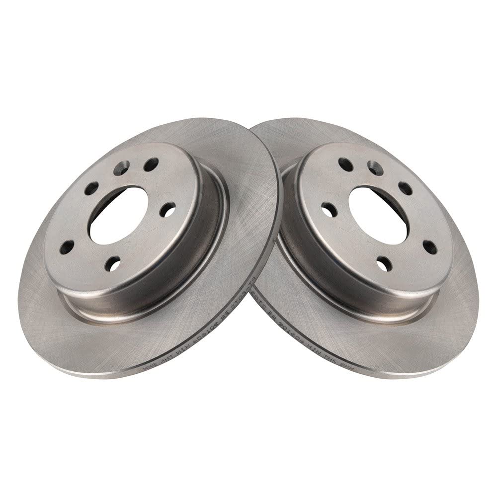 2 Piece Brake Rotor SetKit Includes(1) Rear Driver Side Brake Rotor(1) Rear Passenger Side Brake RotorFitmentCompatible with: 2016-19 Chevrolet Cruze Rear Driver & Passenger SideCompatible with: 2017-23 Chevrolet Bolt EV Rear Driver & Passenger SideCompatible with: 2016-19 Chevrolet Volt Rear Driver & Passenger SideCompatible with: 2022-23 Chevrolet Bolt EUV Rear Driver & Passenger SideProduct AttributesDiscard Thickness: 0.31 inNominal Thickness: 0.39 inMounting Bolt Hole Diameter: 0.55 inOverall Height: 1.73 inNominal Thickness: 10 mmOutside Diameter: 10.39 inMounting Bolt Hole Circle Diameter: 105 mmMounting Bolt Hole Diameter: 14 mmCenter Hole Diameter: 2.36 inOutside Diameter: 264 mmMounting Bolt Hole Circle Diameter: 4.13 inOverall Height: 44 mmStud/Lug Hole Quantity: 5Discard Thickness: 8 mmMaterial: Cast IronConventional Or Drum-In-Hat Type Rotor: ConventionalRust Resistant Coating: NoABS Tone Ring Included: NoGrade Type: RegularSurface Type: SmoothSolid Or Vented Type Rotor: SolidQuantity: 2 PieceRaces Included: NoBrake Rotor Venting Type: SolidProduct Features Direct Replacement: No modifications necessary G3000 Casting Alloy: Reduced noise and improved durability Non-Directional Surface Finish: Reduced vibrationsItem DetailsTRQ brake rotors are manufactured using premium G3000 casting alloy to reduce noise while braking and enhance service life. TRQ rotors have a non-directional finish to minimize the break-in period for new rotors and reduce vibrations throughout the rotors lifecycle. TRQ recommends replacing brake pads when you replace rotors to ensure even wear and improved component performance. All products are fit and road-tested in our Massachusetts R&D facility to ensure we deliver on our promise of Trusted Reliable Quality.Reference NumbersDuraGo: BR901604General Motors: 13509119, 13514609, 13514611, 13597355Raybestos Brakes: 582034, 582034FZN, 582034P, 582034R