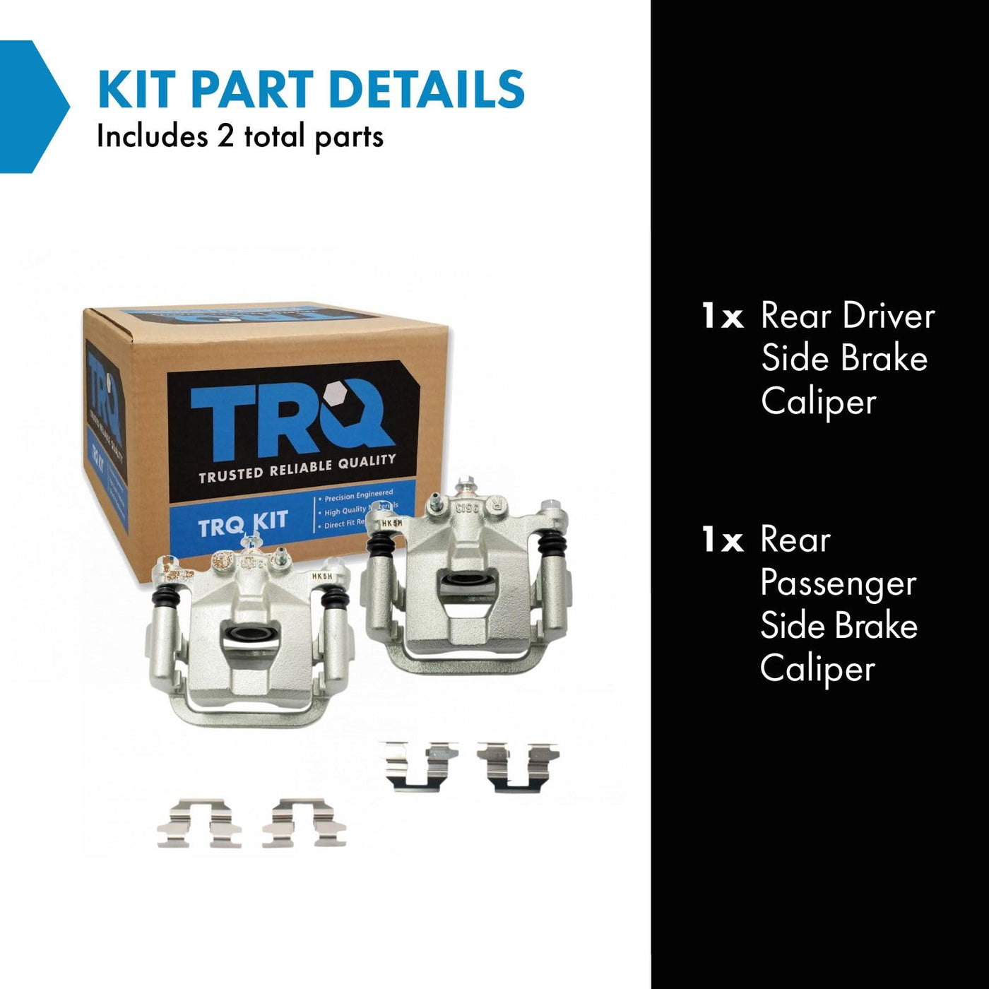 2 Piece Brake Caliper SetKit Includes(1) Rear Driver Side Brake Caliper(1) Rear Passenger Side Brake CaliperFitmentCompatible with: 2007-12 Nissan Altima Rear Driver & Passenger SideCompatible with: 2007-08 Nissan Maxima Rear Driver & Passenger SideProduct AttributesQuantity: 2 PieceProduct Features High-Temperature EPDM Seals and Boots: Improved resistance to thermal deterioration Electrostatic High Heat Powder Coating: Resist rust and corrosion Racing-Grade Silicone Lubricant Hardware and Abutment Kit Included 100% New ComponentsItem DetailsTRQ brake calipers are made from premium raw materials designed to restore original performance. All TRQ calipers are new, so there will never be a core charge with your TRQ purchase. TRQ brake calipers include upgraded seals, washers, abutment kits and brackets where applicable to ensure a complete repair. TRQ recommends replacing your calipers in pairs with new brake pads and brake rotors to ensure components wear evenly and avoid multiple repairs of the same system. All products are fit and road-tested in our Massachusetts R&D facility to ensure we deliver on our promise of Trusted Reliable Quality.Reference NumbersACDelco: 18FR12813N, 18FR12814NCARDONE Reman: 19-2780A, 19-2781A, 19-B2780A, 19-B2781ADFC Calipers Outright Program - Archived: 331-67658, 331-67659Raybestos Brakes: FRC12045, FRC12045N, FRC12046, FRC12046NUAP: C42577, C42578UCX: 10-7210S, 10-7211S