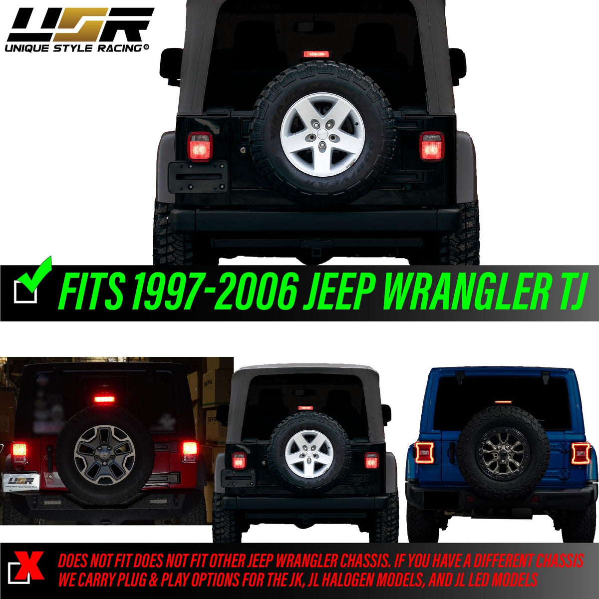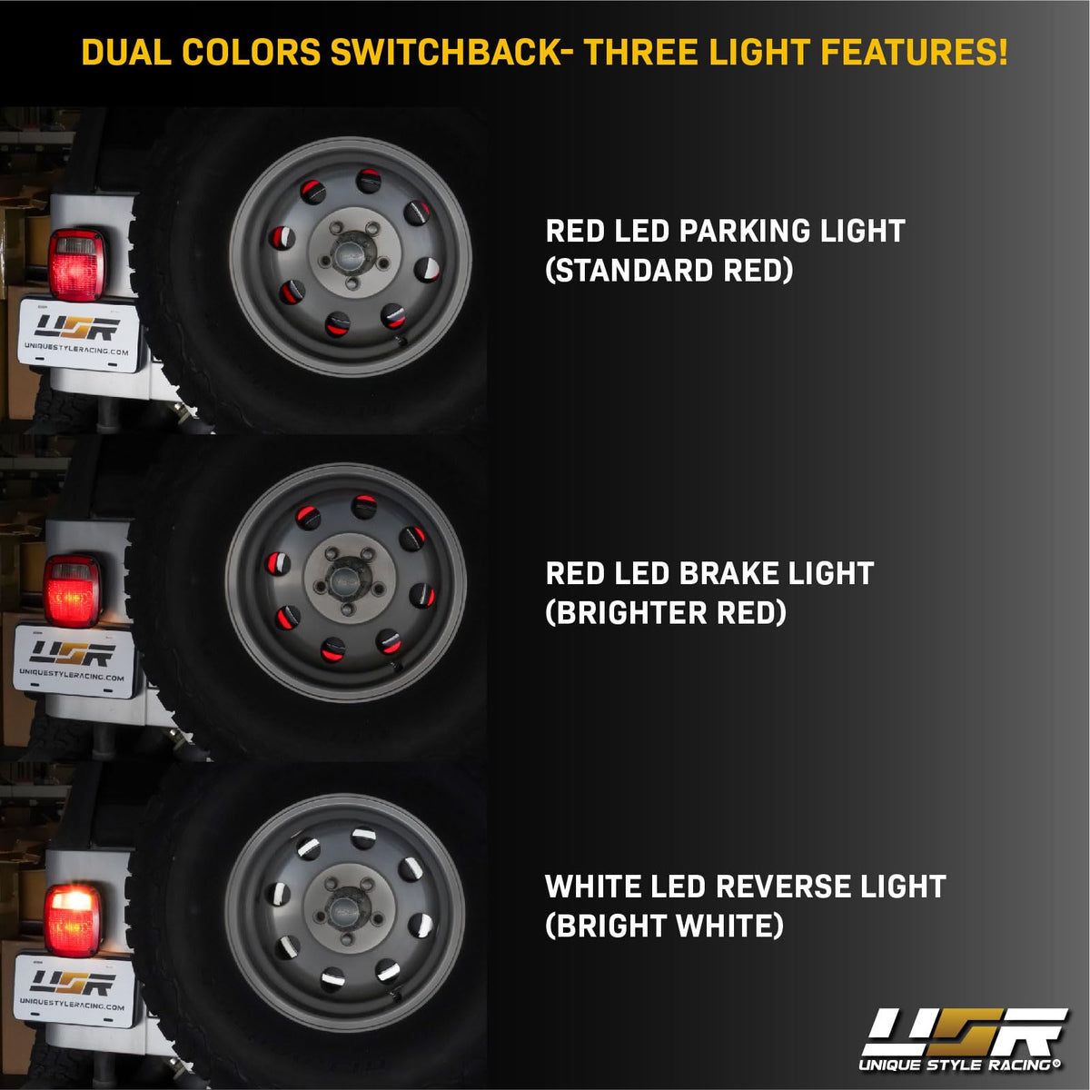 Usr 97-06 Tj Wrangler Spare Tire 3Rd Third Brake Light Switchback Red/White Led Halo Ring Bar Tail Wheel Light Compatible With 1