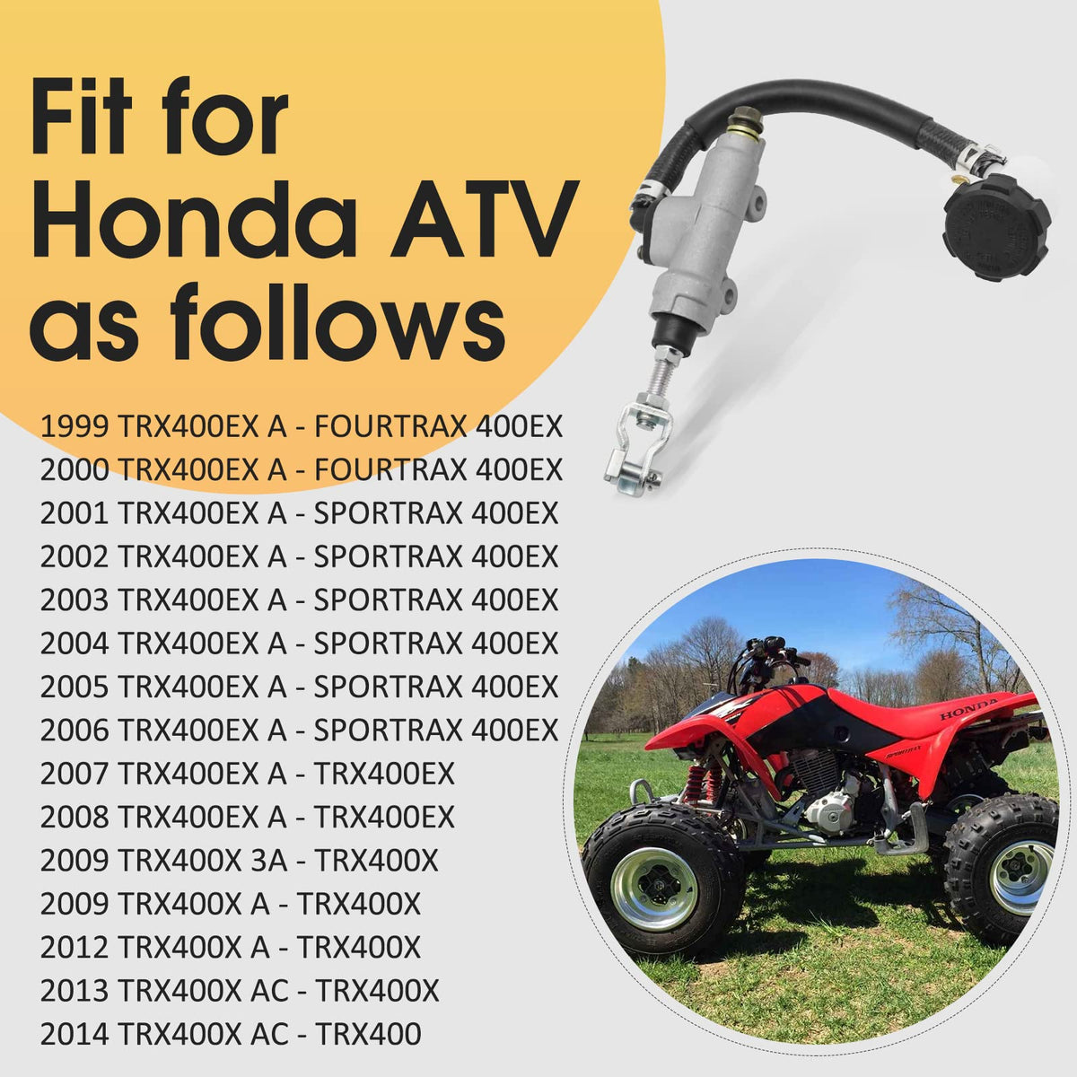 Includes:Rear Brake Master Cylinder Assembly ×1 Manufacturer Part #43510-Hn1-016Replacement Part #43510-Hn1-006Fit For Honda Atv As Follows:1999 Trx400Ex A - Fourtrax 400Ex2000 Trx400Ex A - Fourtrax 400Ex2001 Trx400Ex A - Sportrax 400Ex2002 Trx400Ex A - Sportrax 400Ex2003 Trx400Ex A - Sportrax 400Ex2004 Trx400Ex A - Sportrax 400Ex2005 Trx400Ex A - Sportrax 400Ex2006 Trx400Ex A - Sportrax 400Ex2007 Trx400Ex A - Trx400Ex2008 Trx400Ex A - Trx400Ex2009 Trx400X 3A - Trx400X2009 Trx400X A - Trx400X2012 Trx400X A - Trx400X2013 Trx400X Ac - Trx400X2014 Trx400X Ac - Trx400X