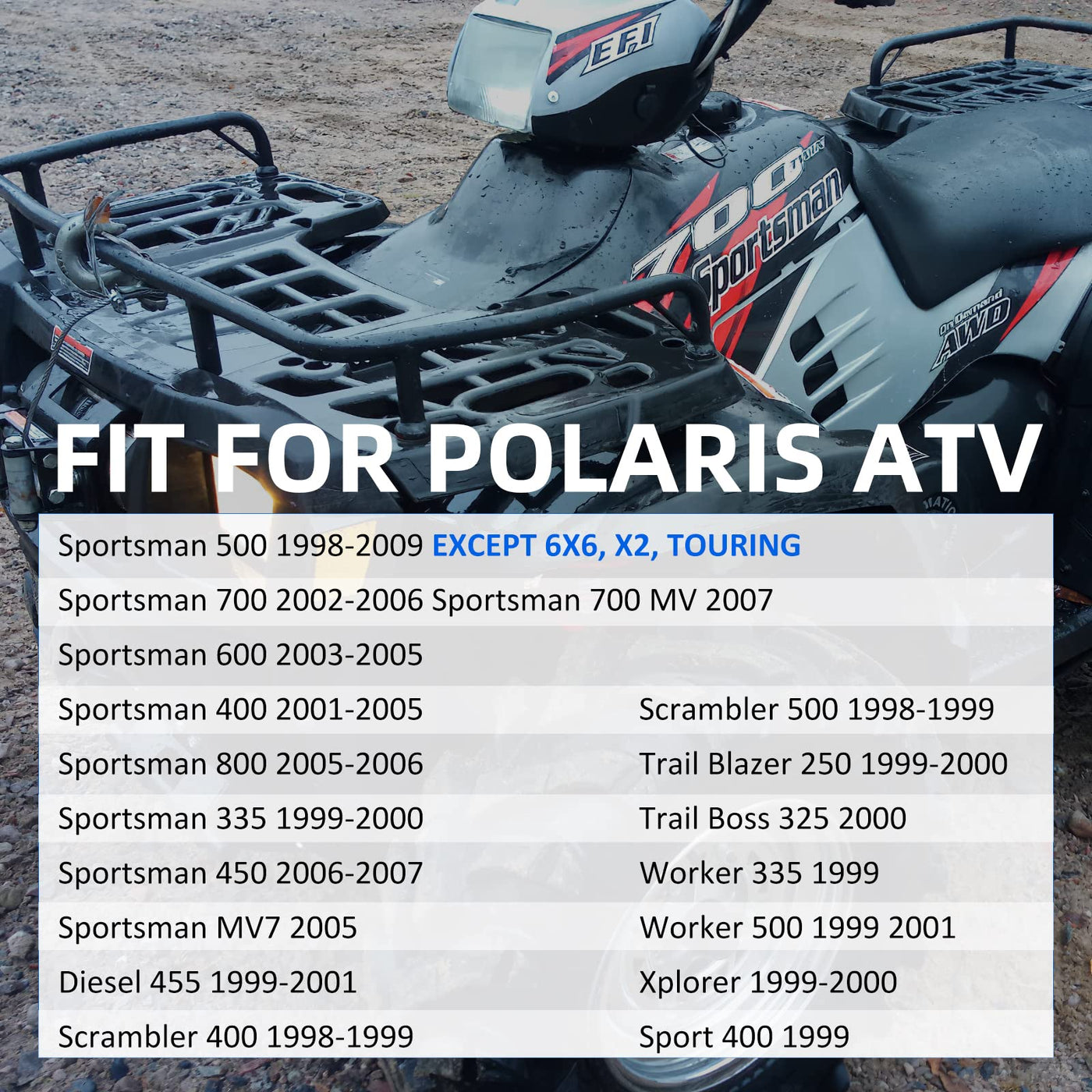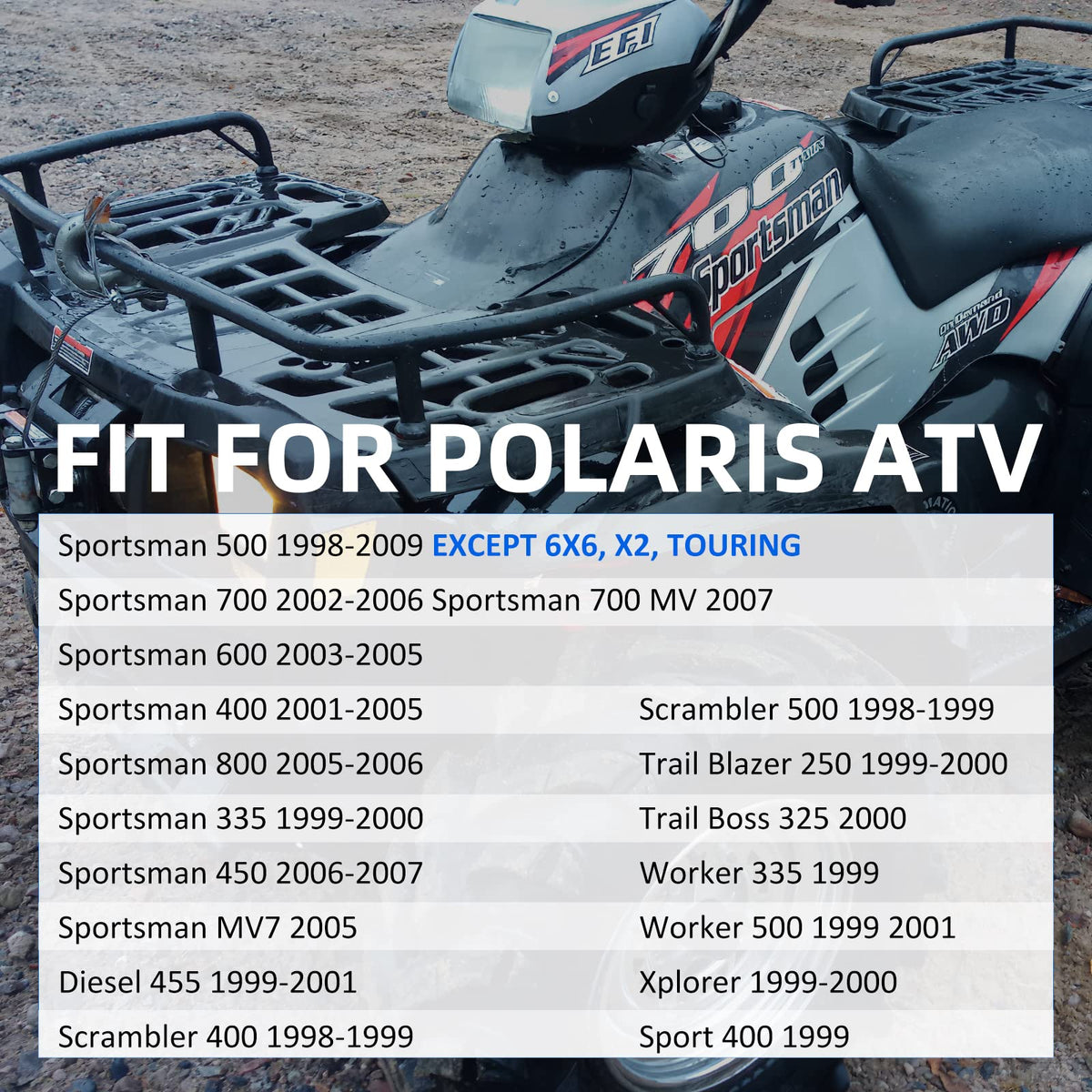 Q: What Polaris ATV models are compatible with this Rear Foot Brake Master Cylinder?A: This Rear Foot Brake Master Cylinder is compatible with various Polaris ATV models, including Sportsman 500 (1998-2009 except 6x6, X2, Touring), Sportsman 700 (2002-2006), Sportsman 600 (2003-2005), Sportsman 400 (2001-2005), Sportsman 800 (2005-2006), and others. Please refer to the product description for a complete list of compatible models.