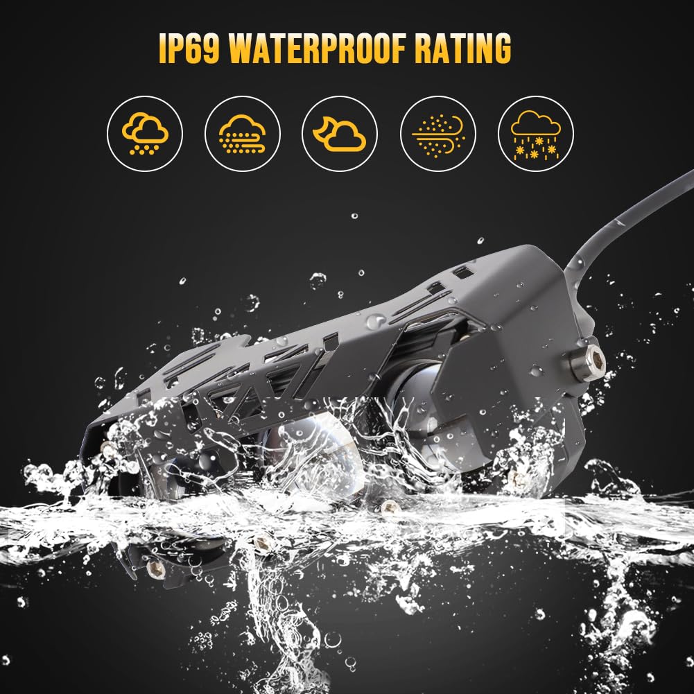 --Made With Premium Material,Shell --Ip68 Waterproof&Dustproof, Durable For Outdoor Use --Lights Are Super Bright But Non Glare --Complete Wiring Harness With Pre Terminated Plugs Help You With The Installation Process --Developed With White Light(High Beam) And Amber Light(Low Beam), Offer Your Night Driving A Full Protection --Come With Universal Light Bracket, Mountable Range: 80-120Mm(3.14-4.72In) --Universal Fit: Kawasaki, Yamaha,, Honda, Suzuki, 2017-2019 Ski-D Oo G4.