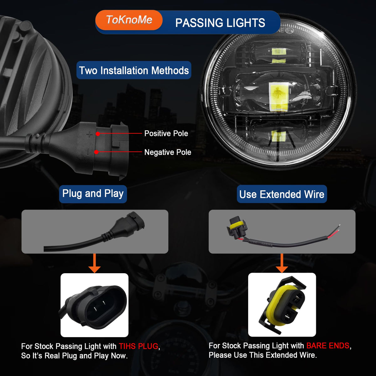 ToKnoMe Black 7'' inch LED Headlight Fog Passing Lights Motorcycle Lamp Compatible with Harley Davidson Touring Road King Ultra