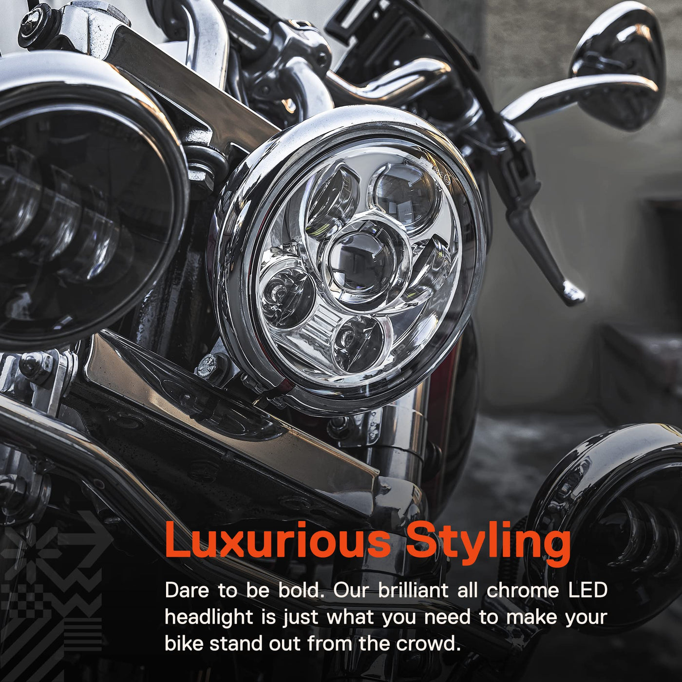 TRUE MODS 5.75' 5-3/4 Harley LED Headlight For Harley Davidson [Chrome-Finish] Round LED Motorcycle Headlight For Dyna Street Bob Super Wide Glide Low Rider Night Rod Train Softail Sportster