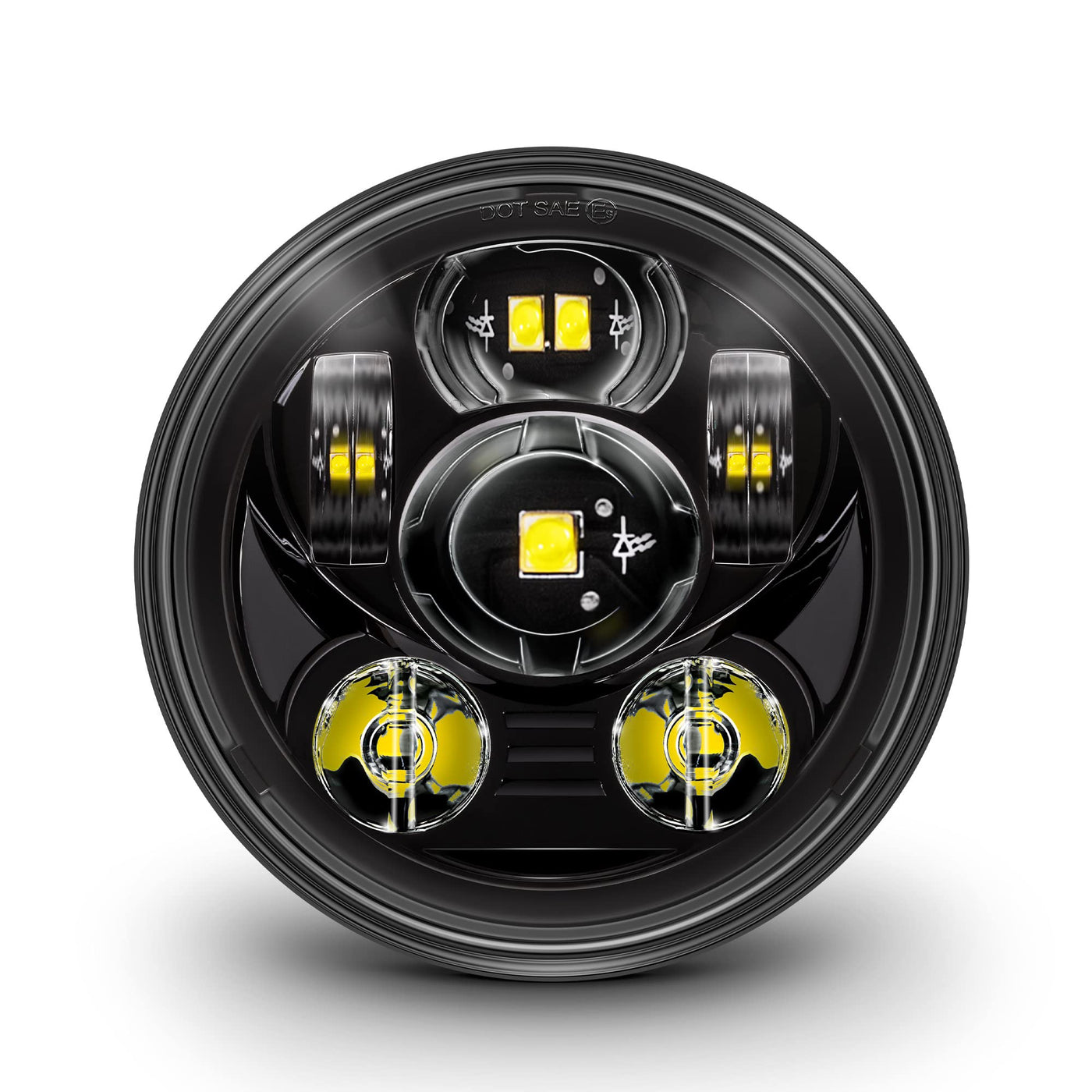 Tear Up the Streets, Not Your LightsWhat do aircraft canopies, police shields, and our headlight lenses have in common? They’re all made of impact, shatter, and scratch resistant polycarbonate. Combine that with a sturdy, corrosion resistant die cast aluminum body with IP66 waterproof rating, and you’ve got a headlight that’s ready for any adventure. While you stay busy navigating the back roads and highways, the heatsink body continuously cools the LEDs for optimal performance.Minimum Effort, Maximum ResultsImproving the performance of your Harley doesn't need to be difficult or expensive. Our LED headlight is an exact fit replacement for your factory light. A quick swap and you're ready to switch on 3,450 lumens of brilliant daylight. The 9 powerful OSRAM LEDs work together to produce up to 45 watts of stunning 6500K white light with a clean cut off line; clearly illuminating road edges, lane lines, and obstacles even in the worst visibility.We’ve Got Your BackWe designed our lights to handle anything, even a trip back to us in a return box. You can drive with confidence knowing that your lights are covered by a two-year warranty. Features9 powerful OSRAM LED lights produce brilliant 6500K white light.2,800 lumen low beam and 3,450 lumen high beam.IP66 waterproof rating.Impact resistant polycarbonate lens.Corrosion resistant, durable die cast aluminum body.Exact fit replacement for stock headlight, easy to install.Two-year warranty. What's Included?(1) 5.75' Round Headlight