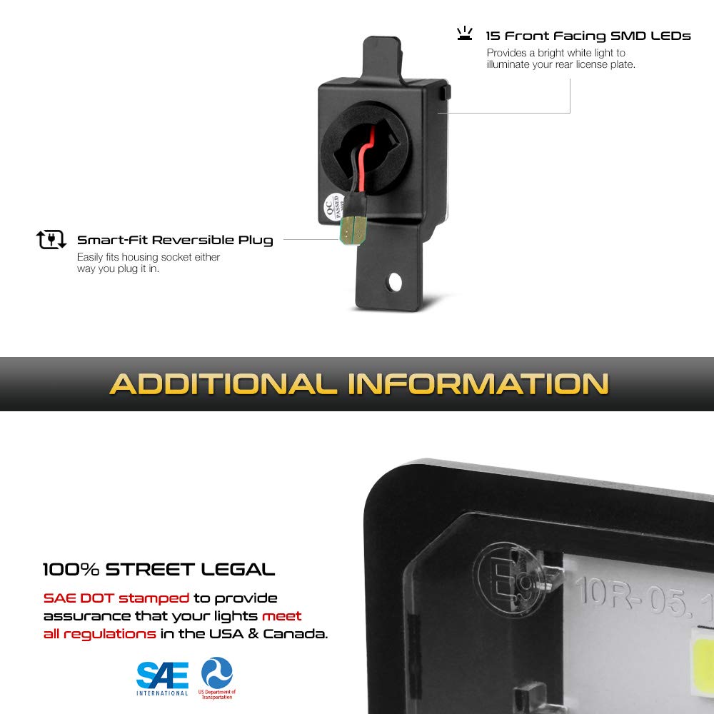Q: How bright are the VIPMOTOZ LED License Plate Lights compared to OEM bulbs?A: The VIPMOTOZ LED License Plate Lights are 10 times brighter than OEM light bulbs, thanks to built-in high power SMD LED chips, ensuring maximum rear-end illumination for enhanced visibility.