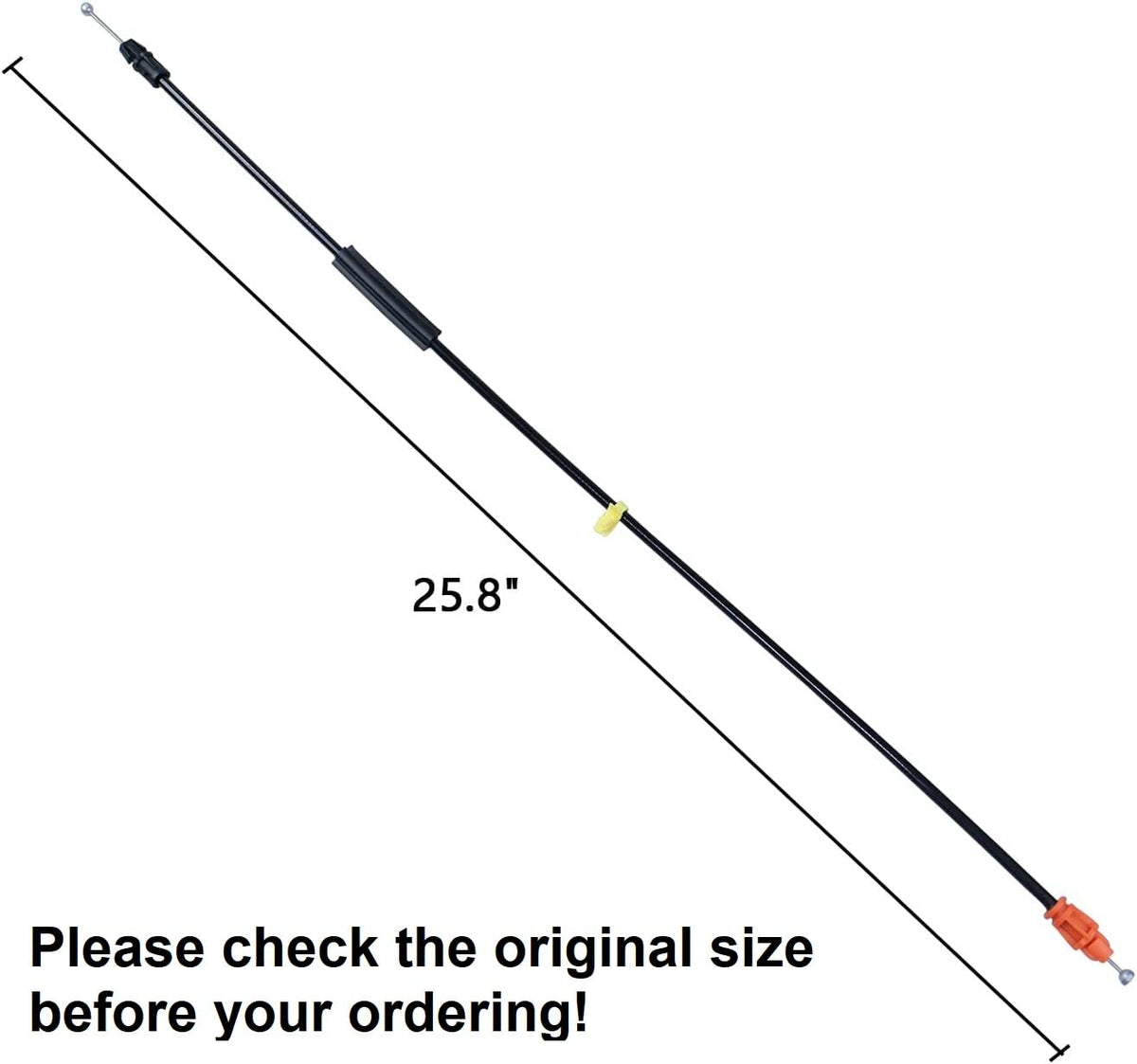Q: What are the dimensions of the door latch cable?A: The door latch cable measures 25.8 inches, suitable for both driver and passenger side front doors.