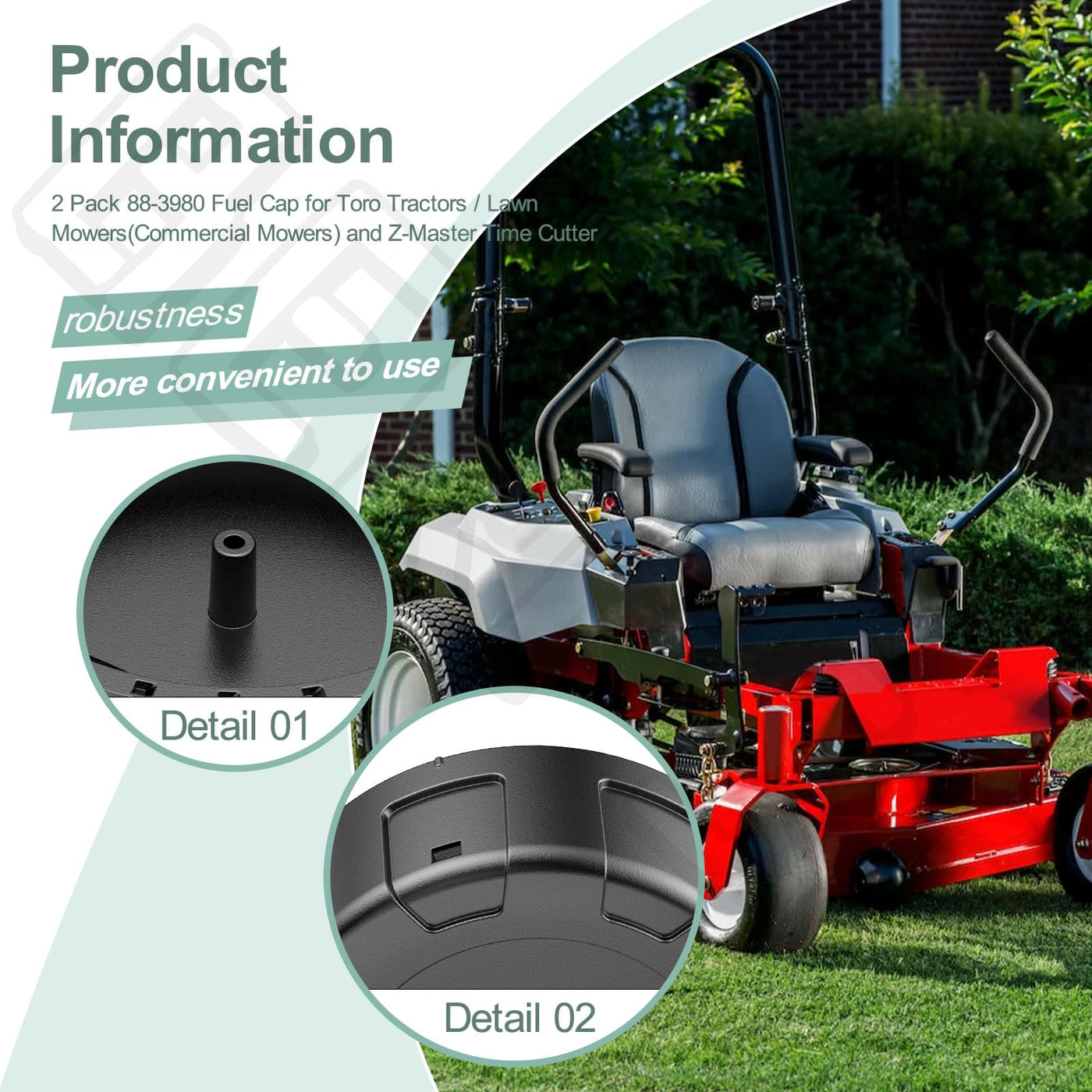 2 Pack 88-3980 Fuel Cap for Toro Tractors/Lawn Mowers(Commercial Mowers) and Z-Master Time Cutter 88-3990 71182 71184 71191 7119