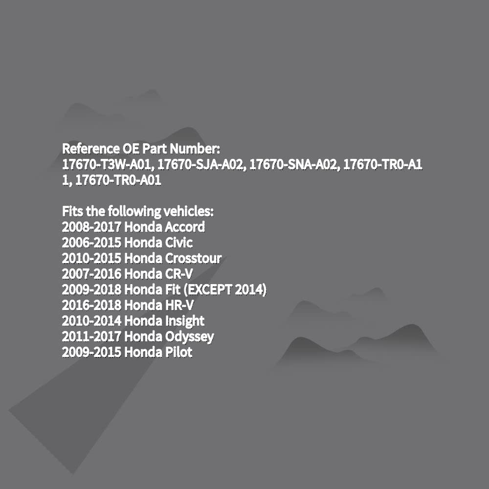 Feature: High-quality materials, precision processing, strict testing product achieves wear resistance and long service life Direct replacement for a proper fit and easy installation, meets or exceeds OEM standards A direct replacement, specifically designed to look and function the same as the original Fuel Filler Cover on Honda This part are of the same quality that came on the vehicle when it was manufactured, and are the highest quality you can find Reference OE Part Number: 17670-T3W-A01, 17670-SJA-A02, 17670-SNA-A02, 17670-TR0-A11, 17670-TR0-A01 Fits the following vehicles: 2008-2017 Honda Accord 2006-2015 Honda Civic 2010-2015 Honda Crosstour 2007-2016 Honda CR-V 2009-2018 Honda Fit (EXCEPT 2014) 2016-2018 Honda HR-V 2010-2014 Honda Insight 2011-2017 Honda Odyssey 2009-2015 Honda Pilot
