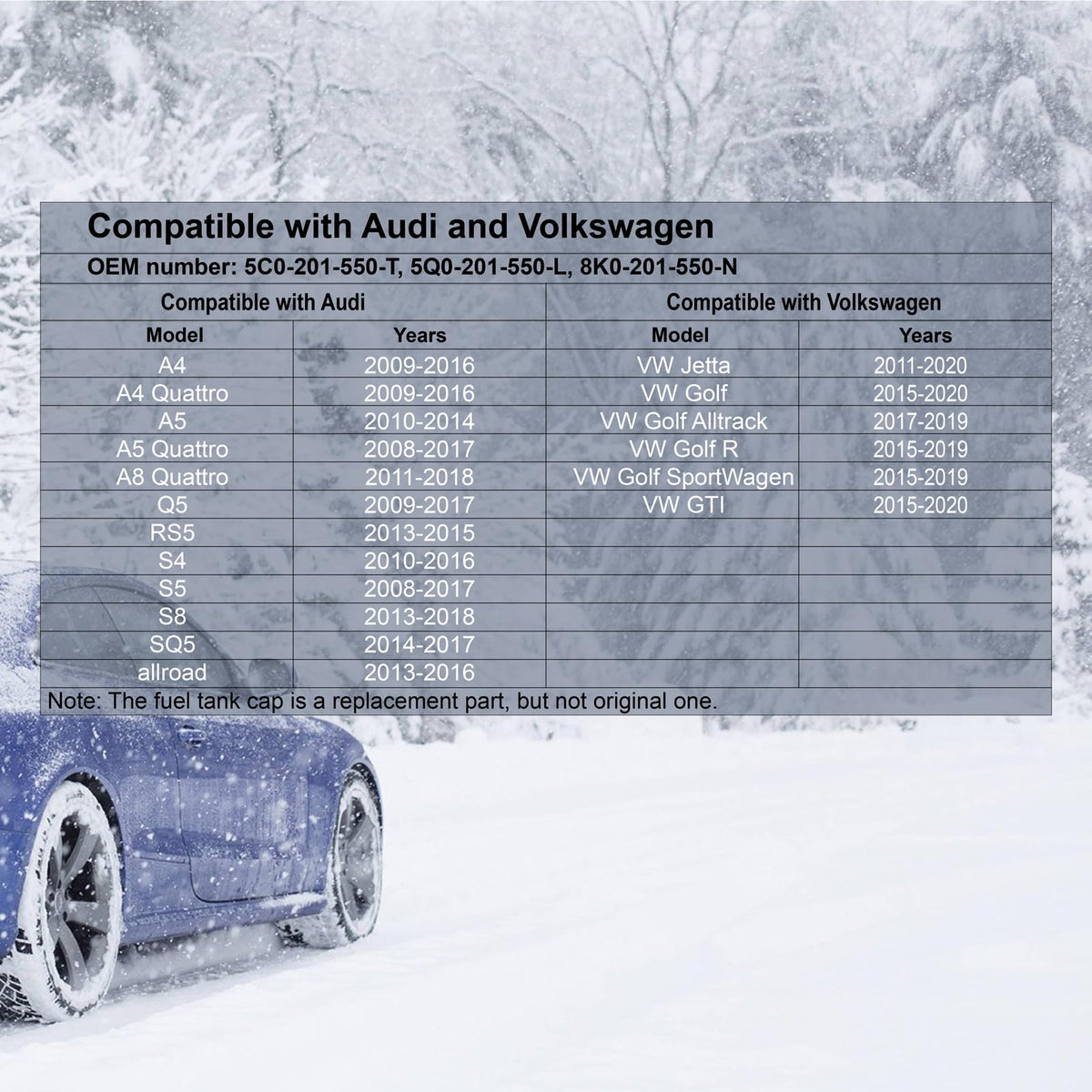 Fuel Tank Gas Cap 5C0201550T For Volkswagen 2011-2020 Vw Jetta Golf Gti Tiguan, 2008-2017 Audi A4 A5 A5 A8 S4 S5 S8 Q5 Sq5 Rs5 Allroad And More