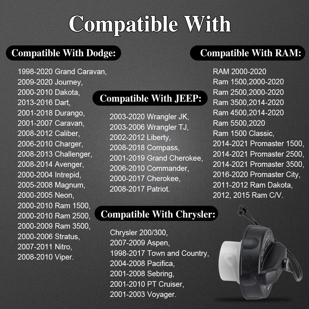 Gas Cap, Filler Cap Fuel Cap Cover, Fuel Tank Filler Cap Replacement for Dodge Ram Chrysler and More, Replaces #52030377AB 52786