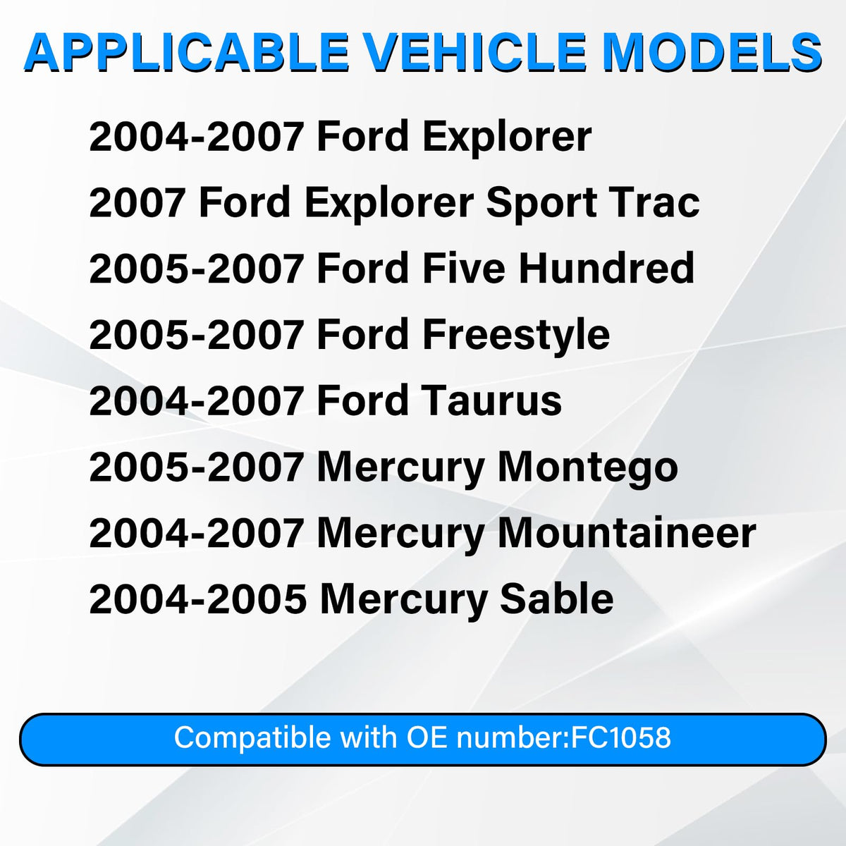 Gas Cap Fuel Cap Replacement Fuel Tank Caps Replace Part #: FC1058, FC-1058, 6L2Z-9030-F, 6L2Z9030F. Gas Cap Replacement Compatible with 2004-2007 Ford Explorer, 2007 Ford Explorer Sport Trac, 2005-2007 Ford Five Hundred, 2005-2007 Ford Freestyle, 2004-2007 Ford Taurus, 2005-2007 Mercury Montego, 2004-2007 Mercury Mountaineer, 2004-2005 Mercury Sable.