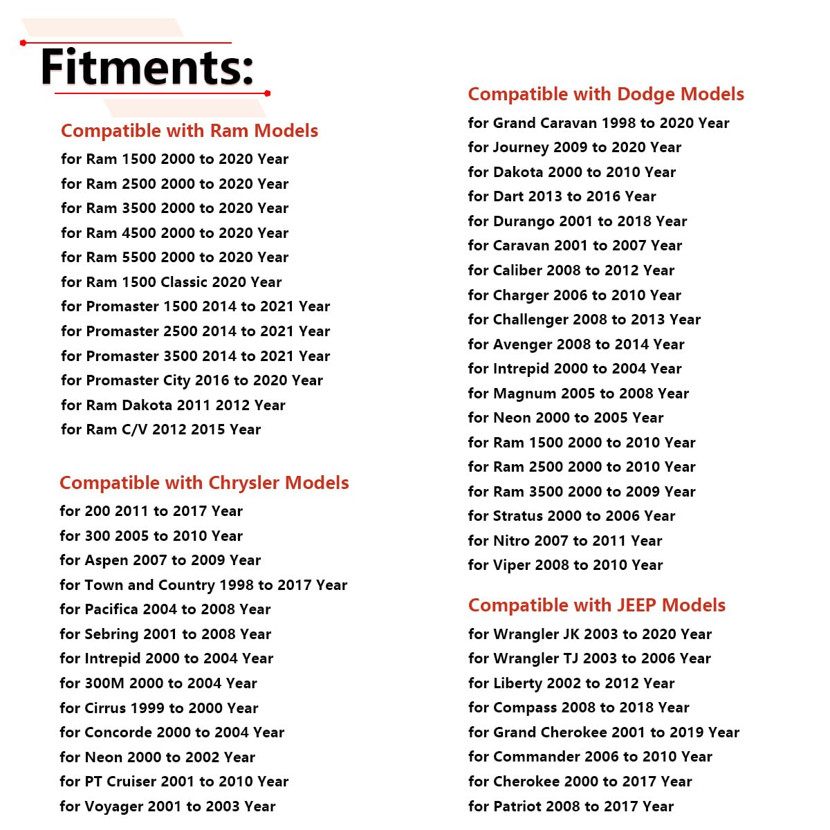 RLB-HILON Fuel Gas Cap OEM NO.: 52030377AB 5278632AG 52030377AA Compatible with Ram Models for Ram 1500 2000 to 2020 Year for Ram 2500 2000 to 2020 Year for Ram 3500 2000 to 2020 Year for Ram 4500 2000 to 2020 Year for Ram 5500 2000 to 2020 Year for Ram 1500 Classic 2020 Year for Promaster 1500 2014 to 2021 Year for Promaster 2500 2014 to 2021 Year for Promaster 3500 2014 to 2021 Year for Promaster City 2016 to 2020 Year for Ram Dakota 2011 2012 Year for Ram C/V 2012 2015 Year Compatible with Dodge Models for Grand Caravan 1998 to 2020 Year for Journey 2009 to 2020 Year for Dakota 2000 to 2010 Year for Dart 2013 to 2016 Year for Durango 2001 to 2018 Year for Caravan 2001 to 2007 Year for Caliber 2008 to 2012 Year for Charger 2006 to 2010 Year for Challenger 2008 to 2013 Year for Avenger 2008 to 2014 Year for Intrepid 2000 to 2004 Year for Magnum 2005 to 2008 Year for Neon 2000 to 2005 Year for Ram 1500 2000 to 2010 Year for Ram 2500 2000 to 2010 Year for Ram 3500 2000 to 2009 Year for Stratus 2000 to 2006 Year for Nitro 2007 to 2011 Year for Viper 2008 to 2010 Year Compatible with Chrysler Models for 200 2011 to 2017 Year for 300 2005 to 2010 Year for Aspen 2007 to 2009 Year for Town and Country 1998 to 2017 Year for Pacifica 2004 to 2008 Year for Sebring 2001 to 2008 Year for Intrepid 2000 to 2004 Year for 300M 2000 to 2004 Year for Cirrus 1999 to 2000 Year for Concorde 2000 to 2004 Year for Neon 2000 to 2002 Year for PT Cruiser 2001 to 2010 Year for Voyager 2001 to 2003 Year Compatible with JEEP Models for Wrangler JK 2003 to 2020 Year for Wrangler TJ 2003 to 2006 Year for Liberty 2002 to 2012 Year for Compass 2008 to 2018 Year for Grand Cherokee 2001 to 2019 Year for Commander 2006 to 2010 Year for Cherokee 2000 to 2017 Year for Patriot 2008 to 2017 Year