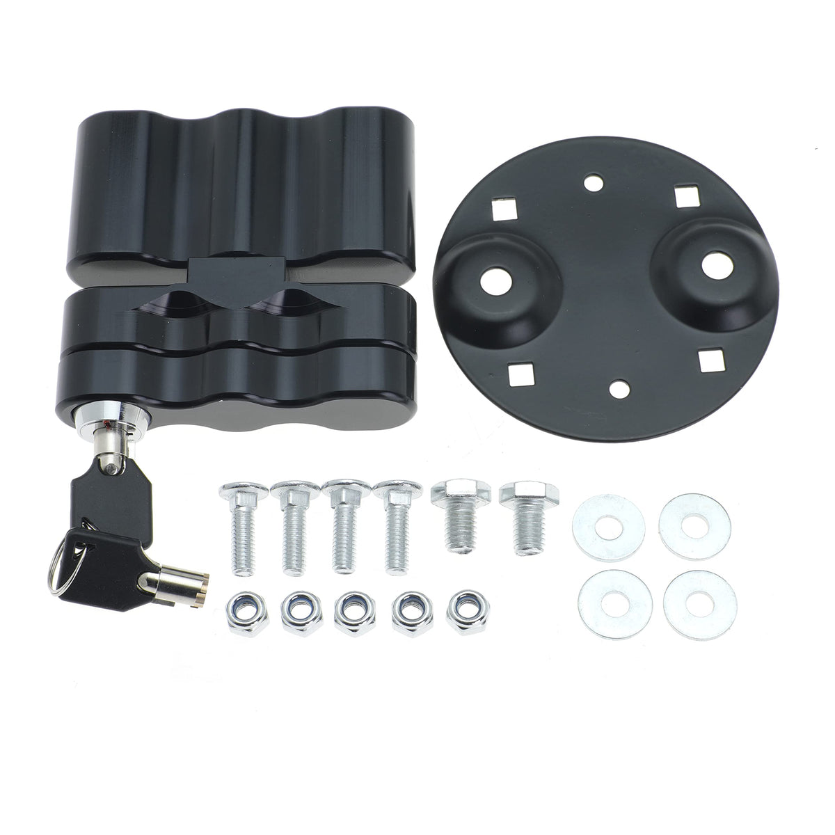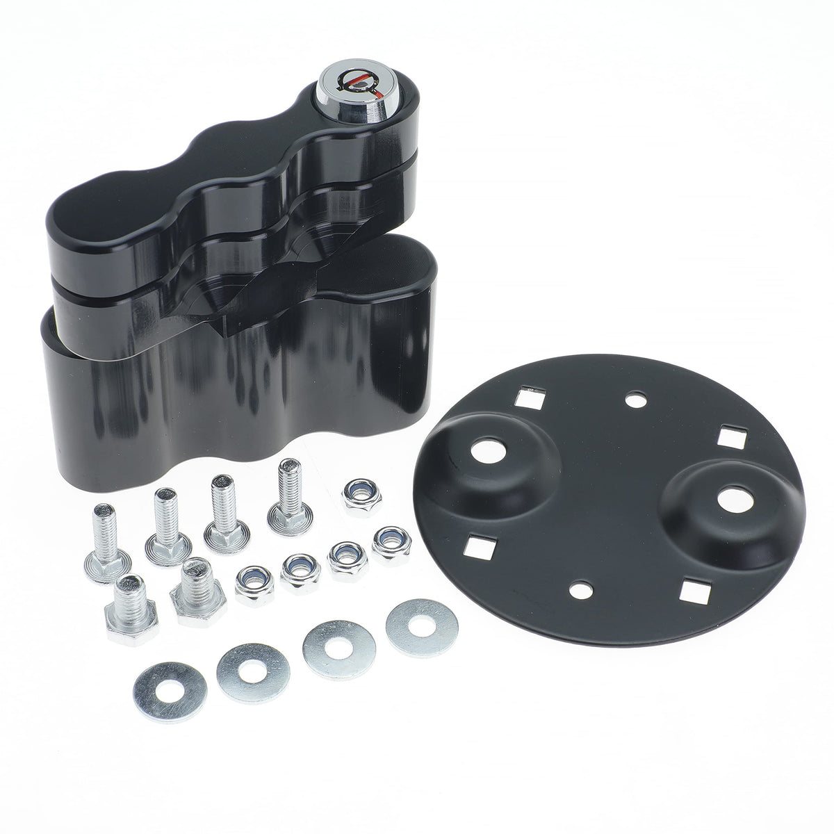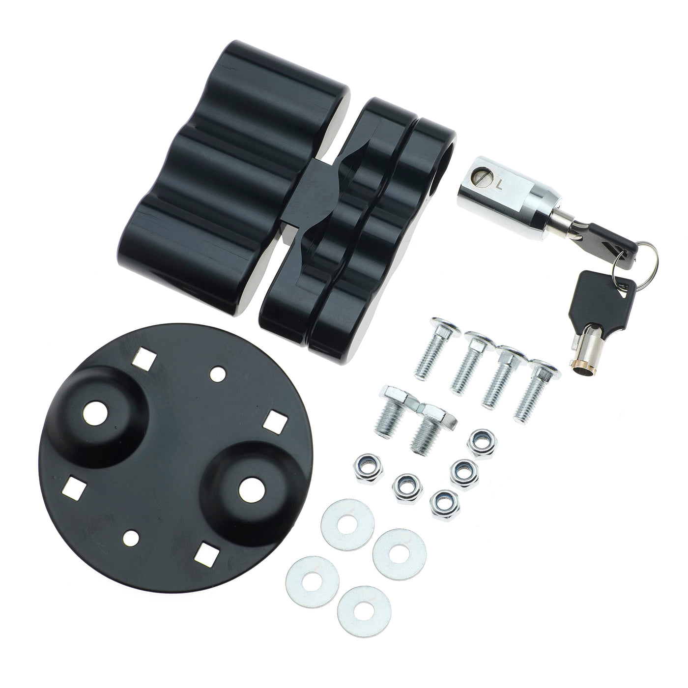Replaces: Replacement Part Number is RX-LOX-PM Compatible With Standard Pack Mount Quality: The unique designs adds strength and high strength screws are durable and provide additional tightening force. Material: Black anodized aluminum, locks your fuel pack or storage box to mounting surface, keys included. Usage: You can install this mount wherever you need to fix the fuel tank, such as cars, motorcycles, ATV, UTV, boats, etc.