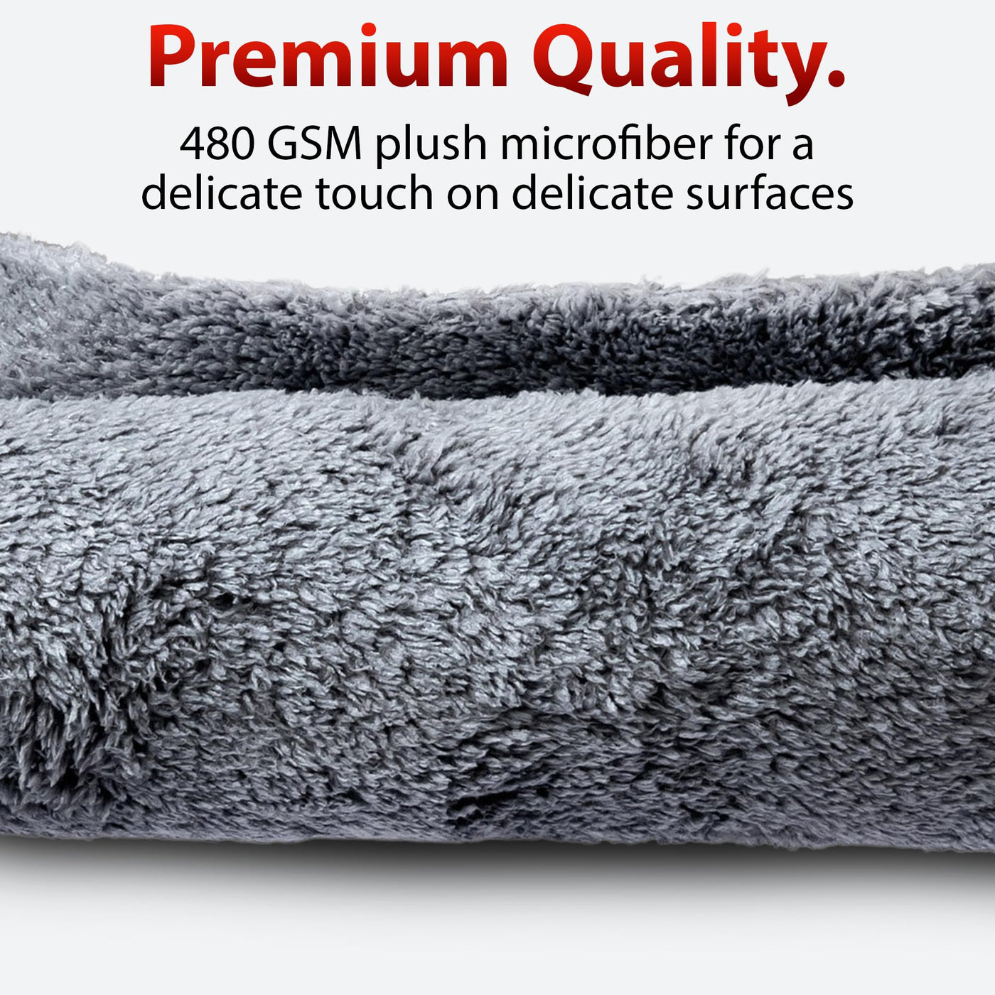 Adam 'S Borderless Grey Microfiber Towel (1Pk) - Premium Ultra Soft Car Detailng Towel Cloths, 480Gsm - Safe For Car Wash, Home