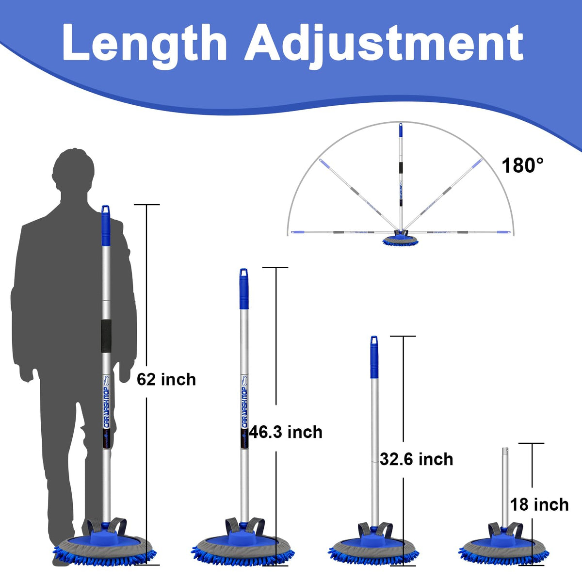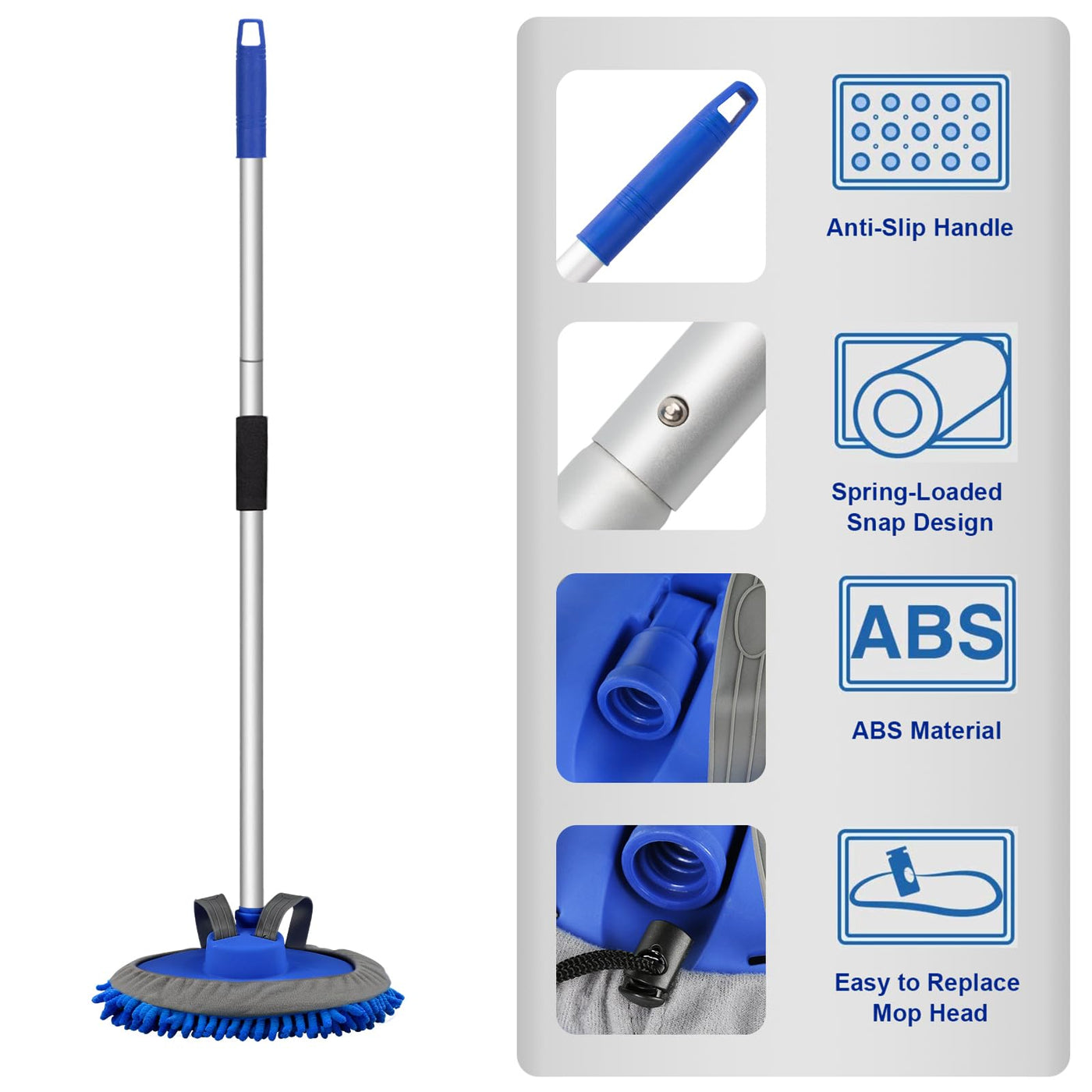 2 In 1 Removable Car Washing Mop Kit Car Wash Extendable Brush With Lint Scratch Free: Chenille Mop Washing And Cleaning When Assembled Itas A Car Clean Kit With Long Handle When Disassembled, Itas A Hand Mop Head For Inside Car Cleaning Also Great For Indoor And Outdoor Glass, Bathroom Cleaning Toolthe Included Telescoping Handle Extends To 62-Inches Making This Mop Ideal For Cleaning Cars, Trucks, Vans, Suvs, Campers, And Rvs