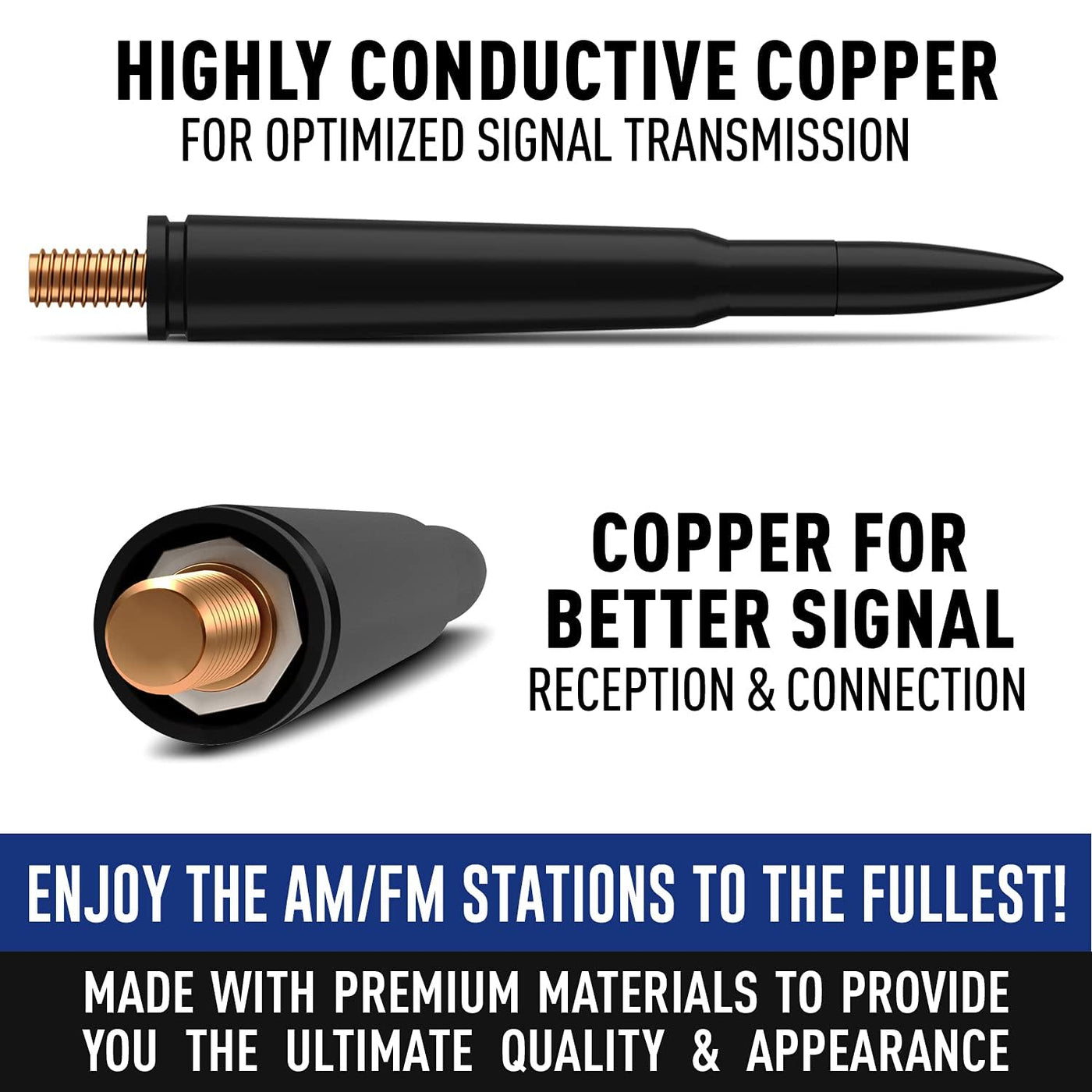 Stylish Bullet Design: The unique .30 caliber bullet design not only enhances the aesthetic of your vehicle but also minimizes wind noise compared to traditional long antennas.