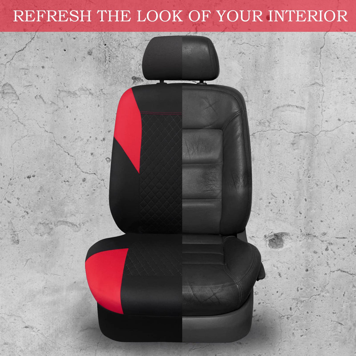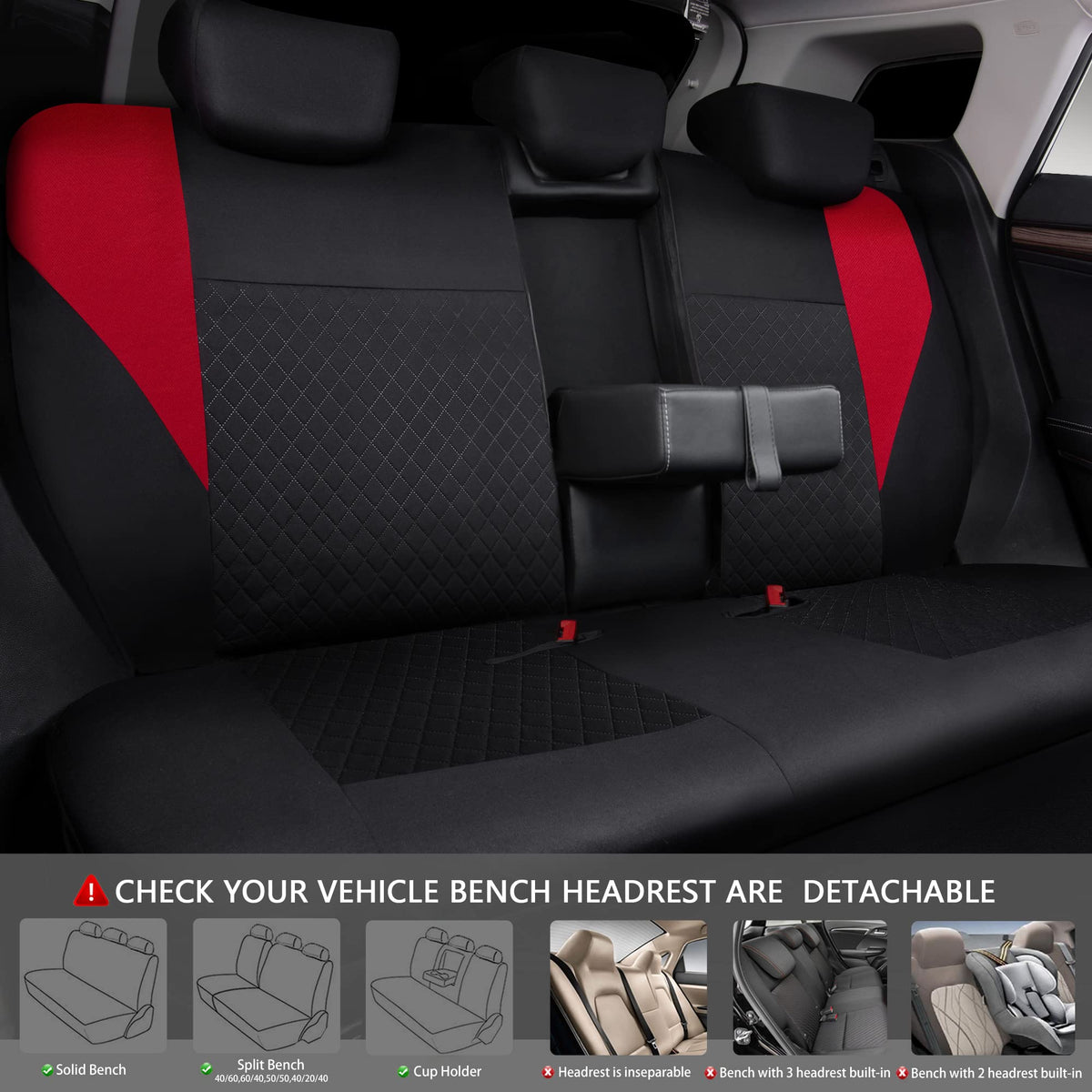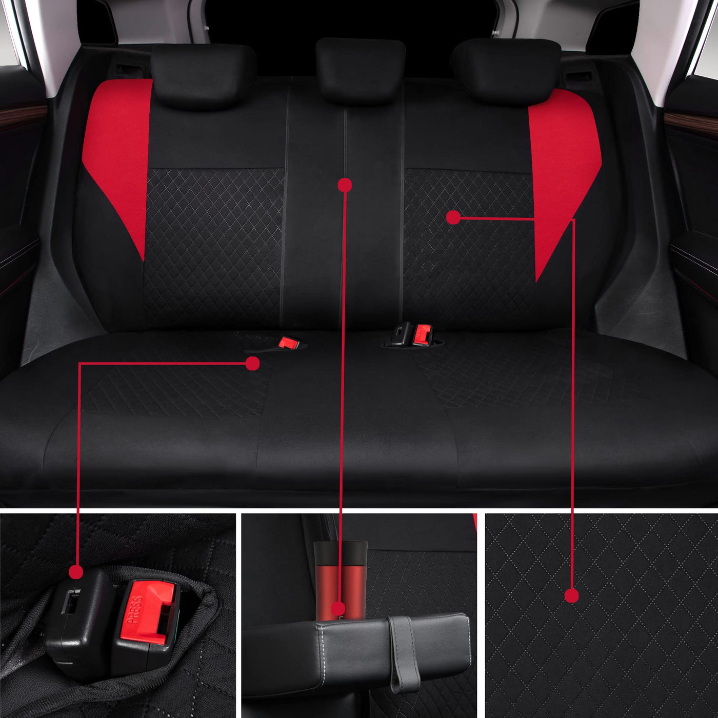 CAR PASS Ultrasonic Embossing Cloth Universal seat Covers-Breathable car seat Cover with 5mm Composite Sponge Inside,Airbag Compatible,2zipper Bench for Sedan,SUV,Truck(Black and Red,Full Set)