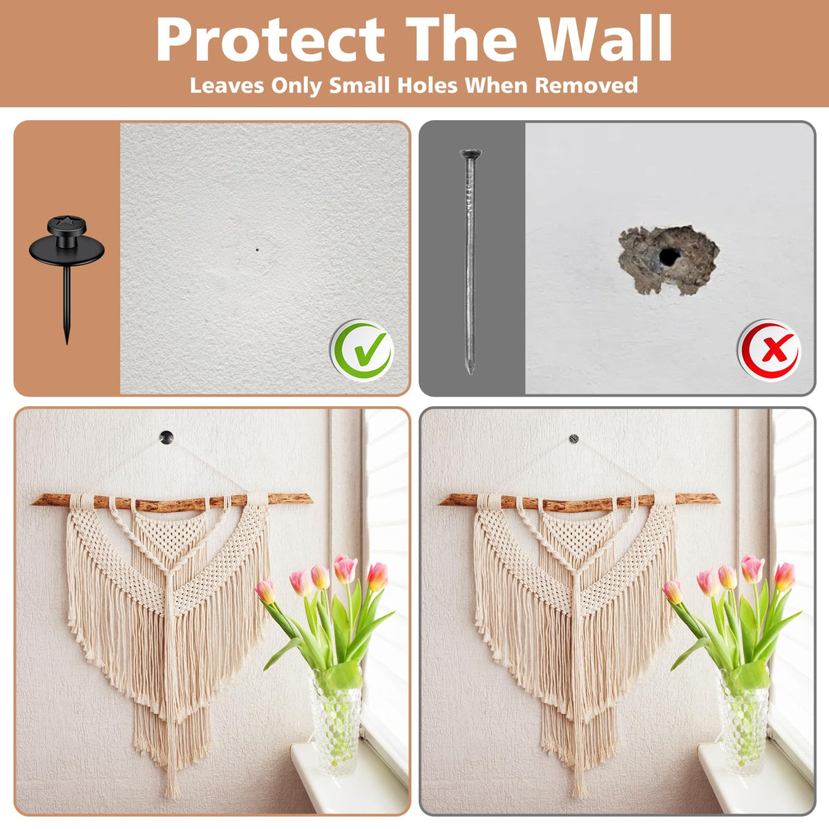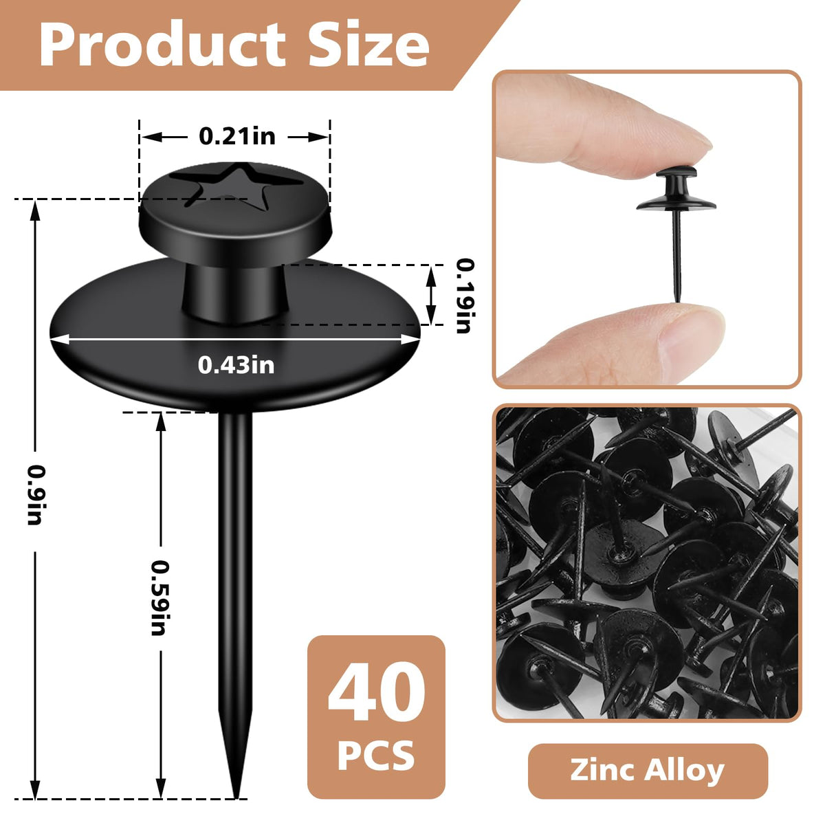 Danrong 40Pcs Double Headed Picture Hangers Nails For Hanging Pictures, Push Pins Wall Hooks, Thumb Tacks For Wall, Wall Hangers Without Nails,Decor Tacks For Home Office Hanging Tapestry Frame(Black)