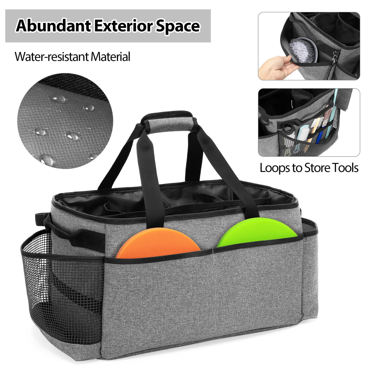 Hodrant Detailing Bag With Polisher Carry Bag, Large Detail Bag Car Care Box For Auto Detailing Supplies, Car Wash Caddy & Trunk Organizer For Buffer Bottle Towel & Cleaning Kit, Gray, Patent Design