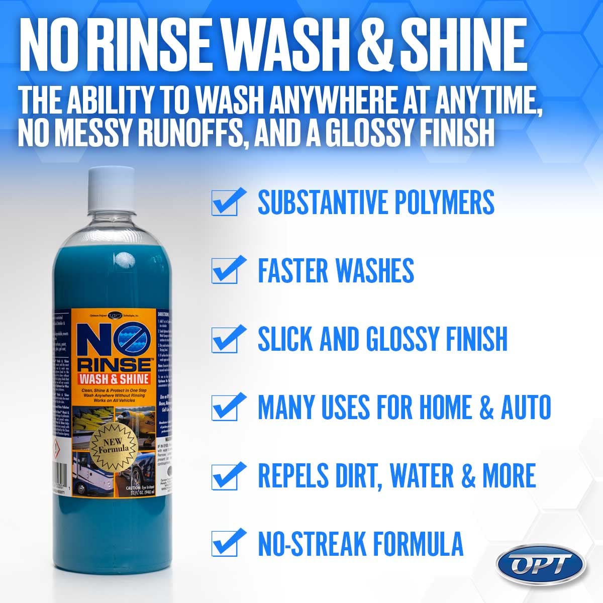 Using just a bucket, 1-2 gallons of water, and your choice of microfiber detailing towels or a standard car sponge, you can quickly and effectively clean your vehicle's surface. Optimum No Rinse Wash & Shine utilizes advanced polymer technology that encapsulates dirt particles, creating a protective barrier between the dirt and your vehicle's finish. Enjoy the benefits of a hassle-free car wash experience, whether you are detailing cars, RVs, motorcycles, boats, or even airplanes.