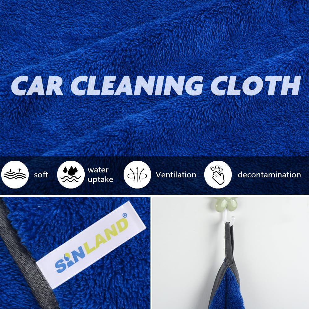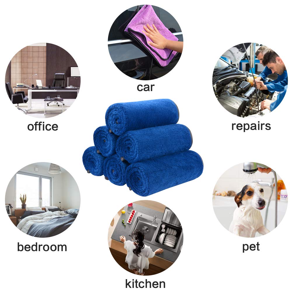 Sinland Microfiber Car Drying Towels Ultra Absorbent Car Wash Cleaning Auto Detailing Towels 380Gsm 16Inch X 24Inch 6Pack Blue