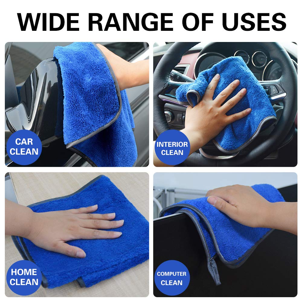 Q: Can these towels be used for purposes other than car cleaning?A: Absolutely! These microfiber towels are multipurpose and can be used for various cleaning tasks such as kitchen cleaning, bathroom cleaning, window washing, and as general household cleaning cloths.