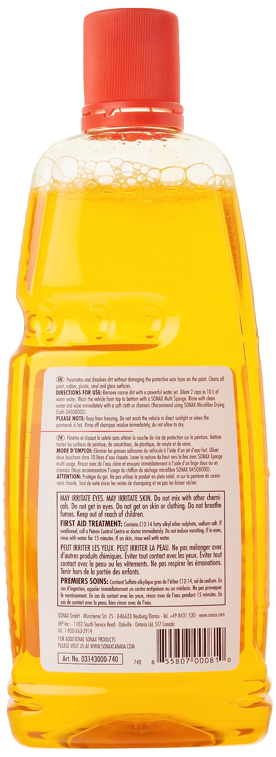 SONAX Car Wash Shampoo Concentrate 314300 | High-Foaming pH-Neutral Formula for Effective Cleaning | Safe on All Paint Wax Sealants & Coatings | Removes Dirt Grime and Road Film | 1L (33.3oz)