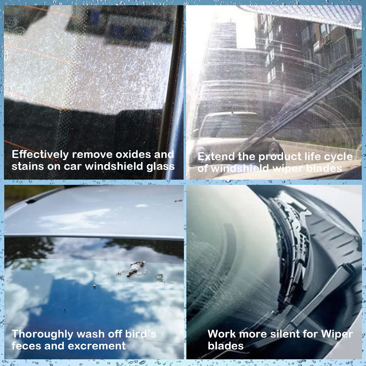 Q: What surfaces can these effervescent tablets clean?A: These versatile effervescent tablets are effective not only for automotive glass but also for cleaning kitchen surfaces, tiles, windows, and mirrors. They are designed to tackle various stains effectively.