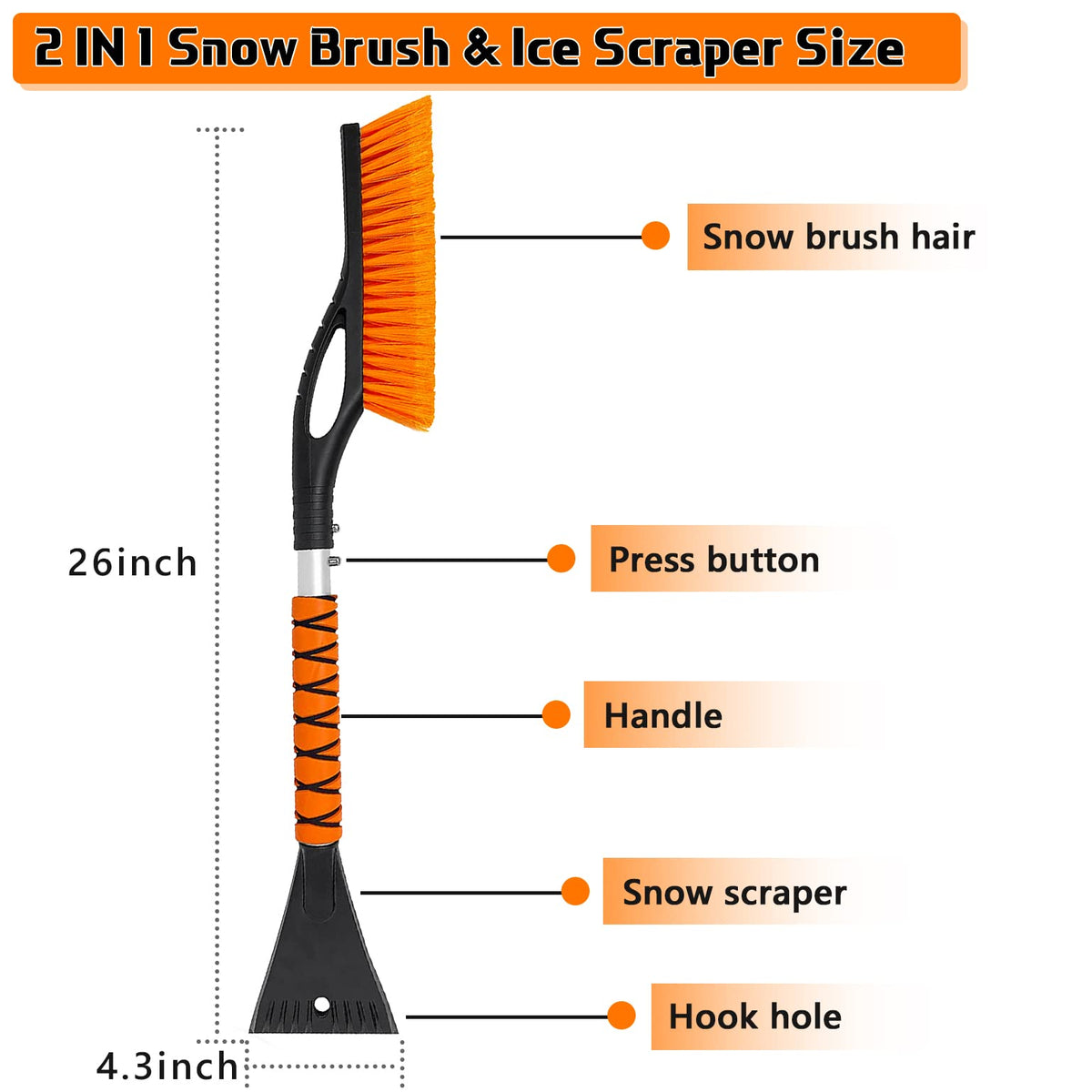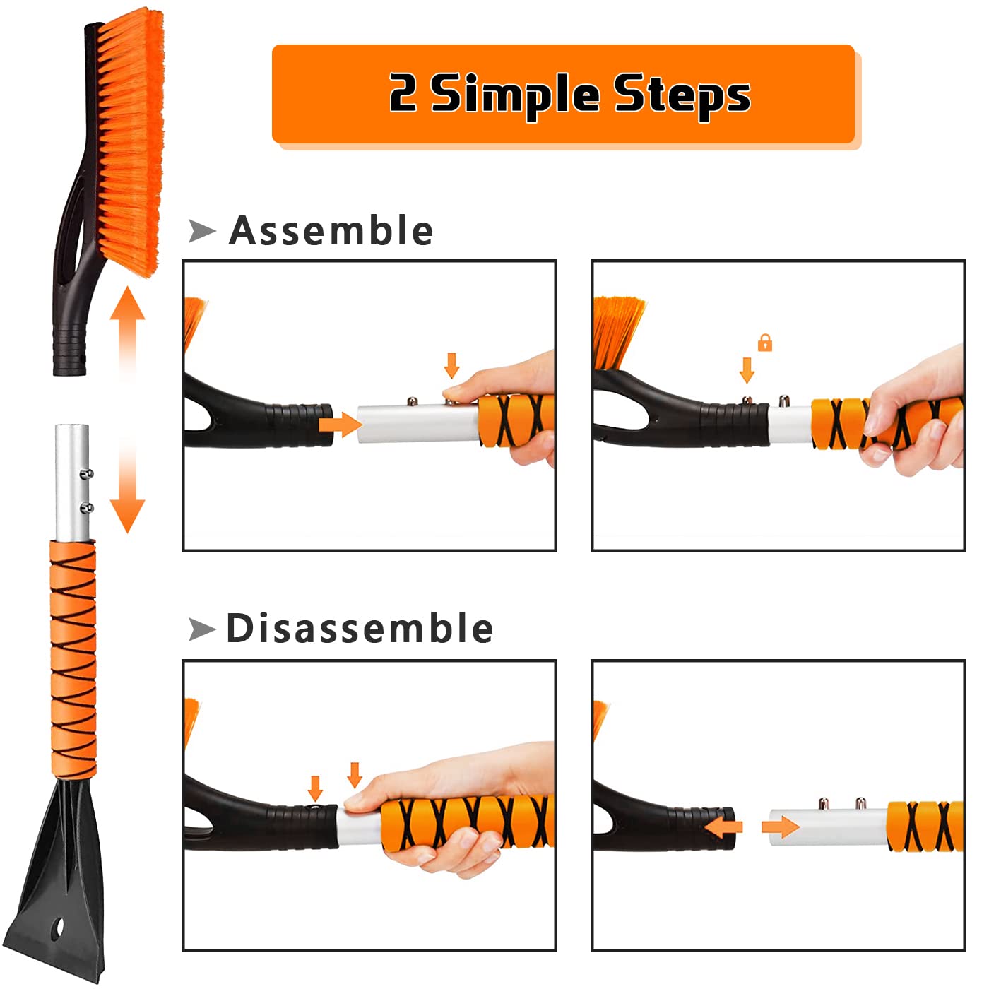 Q: Can I use this product for both scraping ice and brushing off snow?A: Yes, this is a 2-in-1 tool that functions as both a snow brush and an ice scraper. The detachable design allows you to use each component individually or together, making it versatile for winter weather conditions.