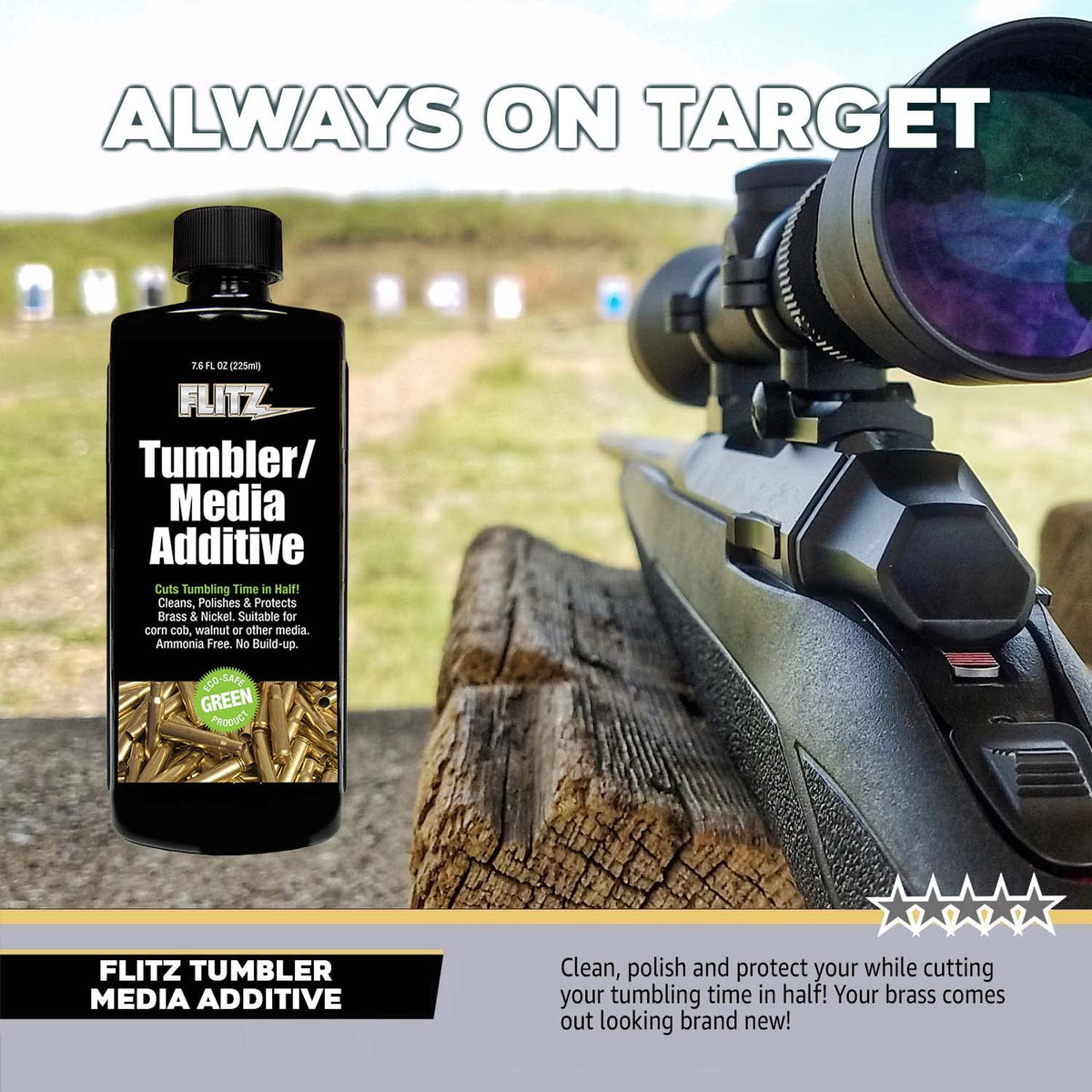 Q: Is the Flitz Tumbler/Media Additive safe for the environment?A: Yes, the Flitz Tumbler/Media Additive is ammonia-free and eco-safe, making it a responsible choice for cleaning and polishing metals.