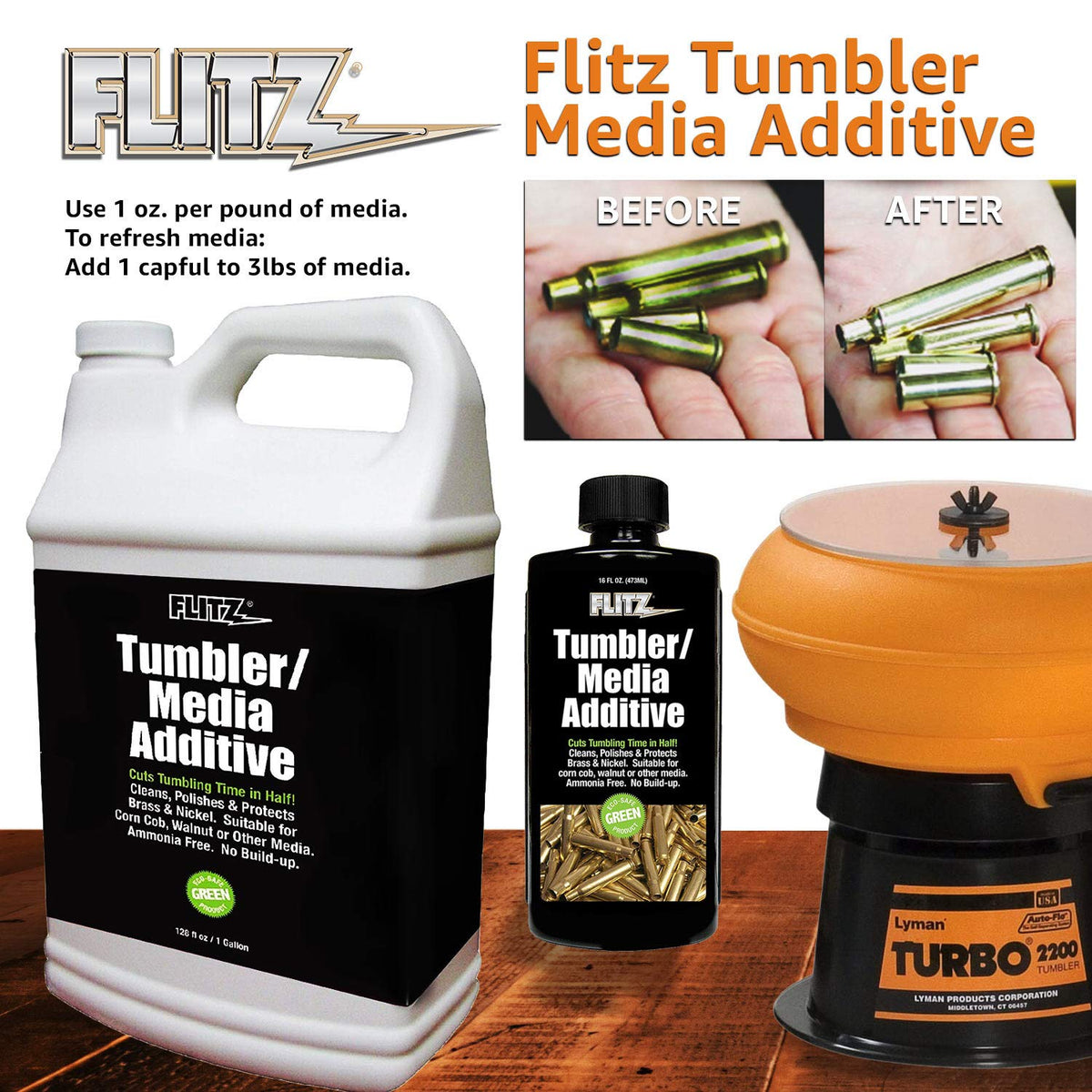 Glass/Media Additive - 7.6 G Bottleflitz Tumber/Media Additive Will Not Harm Any Metal Or Primer. Won'T Brass Gravity. Ammonia-Free. No Lint. Apply To Corn Cob Walnuts Or Other Media. Available Hit Time. Cleans Teeth And Protects Brass And Nickel. Eco-Safe Products. Features Liquid Formula Eco-Friendly And Safe Suitable For All Metals And Primers Cleans Teeth Brass, Copper, Etc. Suitable For Corn, Cob, Walnut Or Other Media Quick Guide Pdf