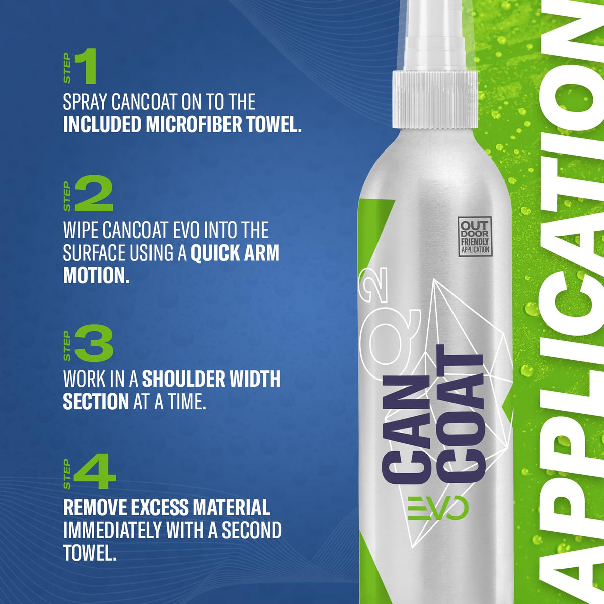 Q: How do I apply GYEON CANCOAT EVO for best results?A: For optimal results, spray GYEON CANCOAT EVO onto a microfiber towel, then wipe it onto the surface of your vehicle. Ensure the surface is clean and dry before application to achieve a high gloss finish.