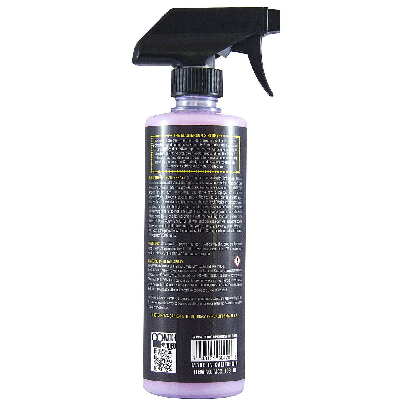 Masterson'S Car Care Mcc_103_128 Detail Spray - Anti Static Sprayable Detailer For Cars, Trucks, Motorcycles, Rv, Apartments - R